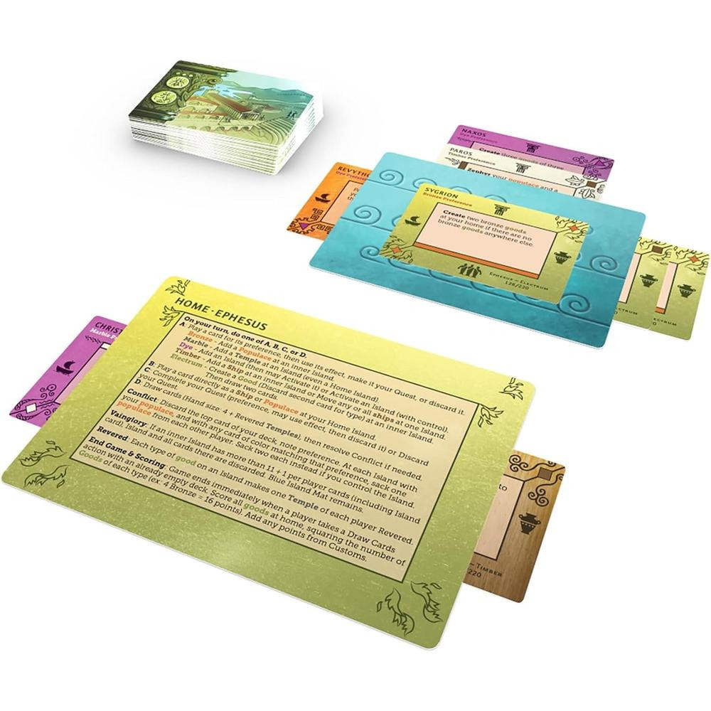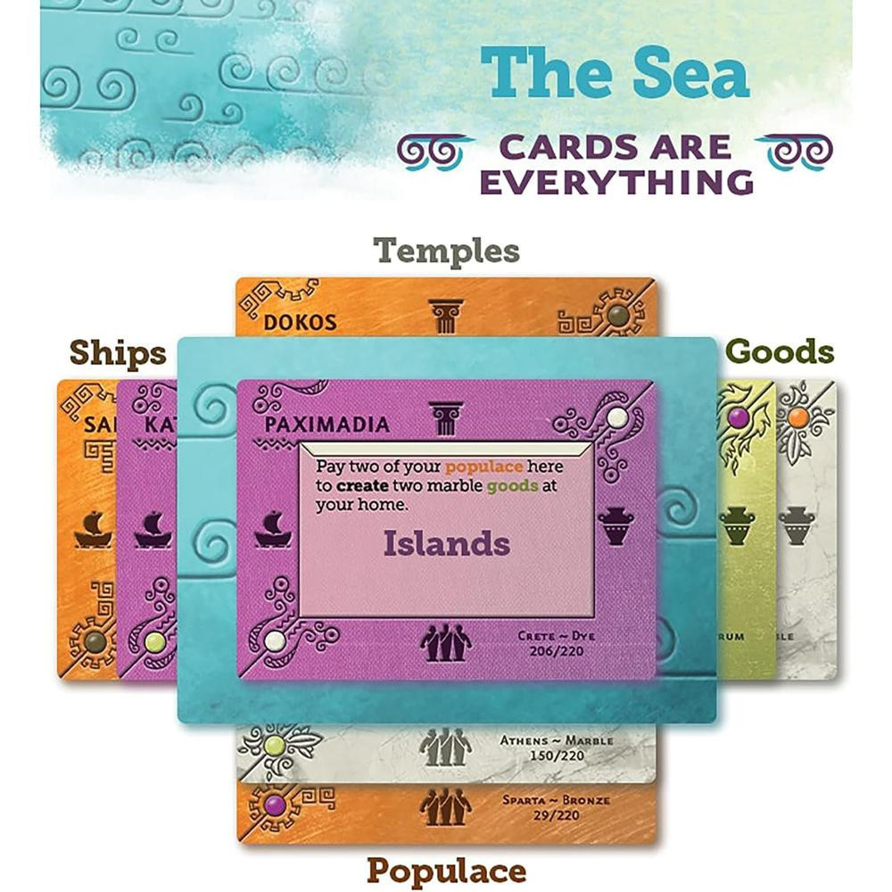 Fedezd fel az Égei-tenger csodálatos szigeteit az Aegean Sea társasjátékban! Válassz a nagy civilizációk közül: Athén, Kréta, Épheszosz, Rhodosz vagy Spárta. Gyűjts hajókat, árucikkeket és egyéb kincseket, majd tedd felvirágoztatva saját szigetedet! A játékosok feladata, hogy okosan használják kártyáikat és képességeiket, így szerezve meg a legtöbb pontot a játék végére. Minden körben izgalmas stratégiák, tárgygyűjtés és flottairányítás vár rád. A szigeten felhalmozott javak, templomok és lakosság révén pontokat gyűjthetsz, míg egyes civilizációk speciális képességekkel extra pontokat szerezhetnek. Készülj fel egy elbűvölő utazásra, és vezess népedet a dicsőséghez!