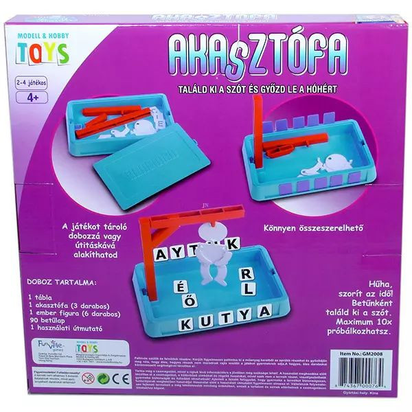 Készülj az izgalomra! A betűk formálják a szót, miközben minden hibás tipp közelebb visz az akasztófa elkészüléséhez. A feszültség nő, minden kör tele van nevetéssel és izgalommal. A játék egyszerű és gyors tempójú, ahol a szókincs és a logika is fejlődik. Ebben a könnyen tanulható családi játékban a cél, hogy kitaláljátok az elrejtett szót, mielőtt az akasztófa teljessé válna. Egy szóválasztó és betűk felfejtése vár rátok. A játék nyelve: magyar. Doboz tartalma: