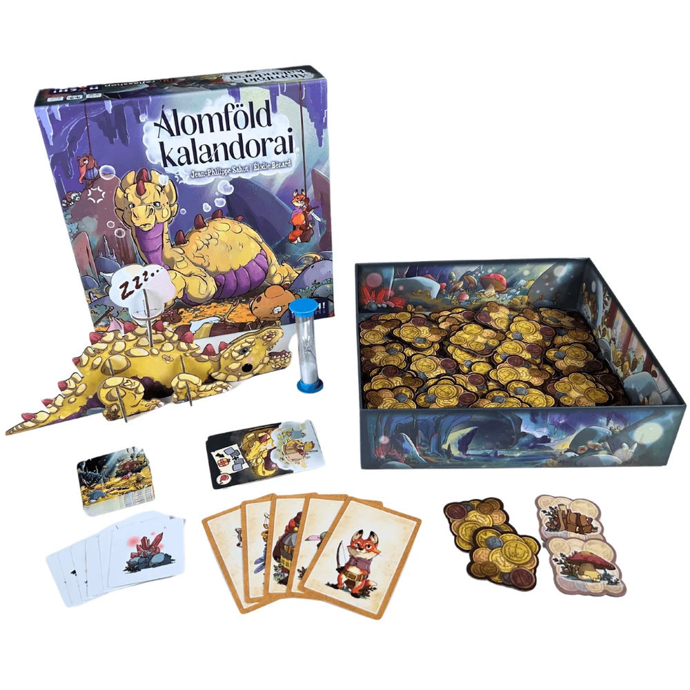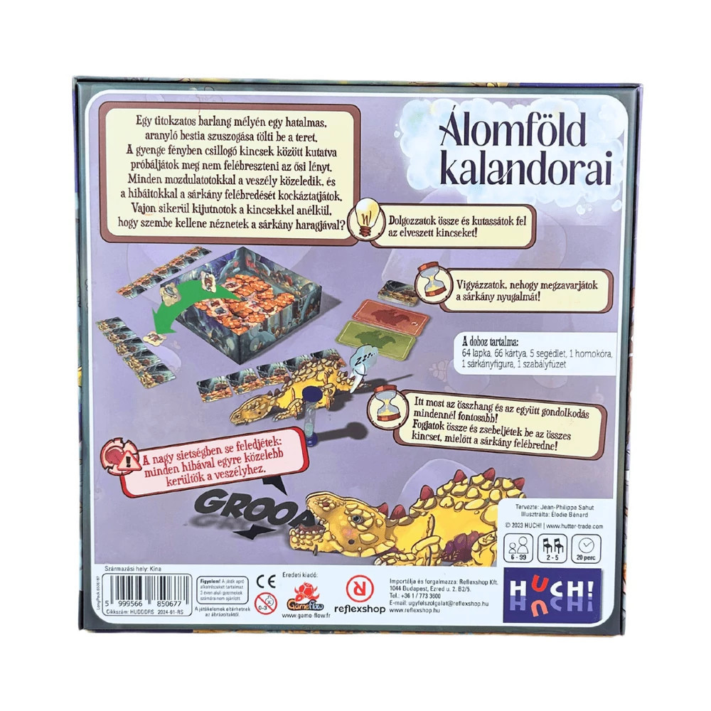 Fedezzétek fel a sárkány barlangját anélkül, hogy felébresztenétek a hatalmas, aranyló lényt! Csapatként kutassatok az elrejtett kincsek után, és szerezzétek meg őket 3 forduló alatt. Legyetek óvatosak, mert minden hiba a sárkány álmát zavarja meg! A játék tartalma: