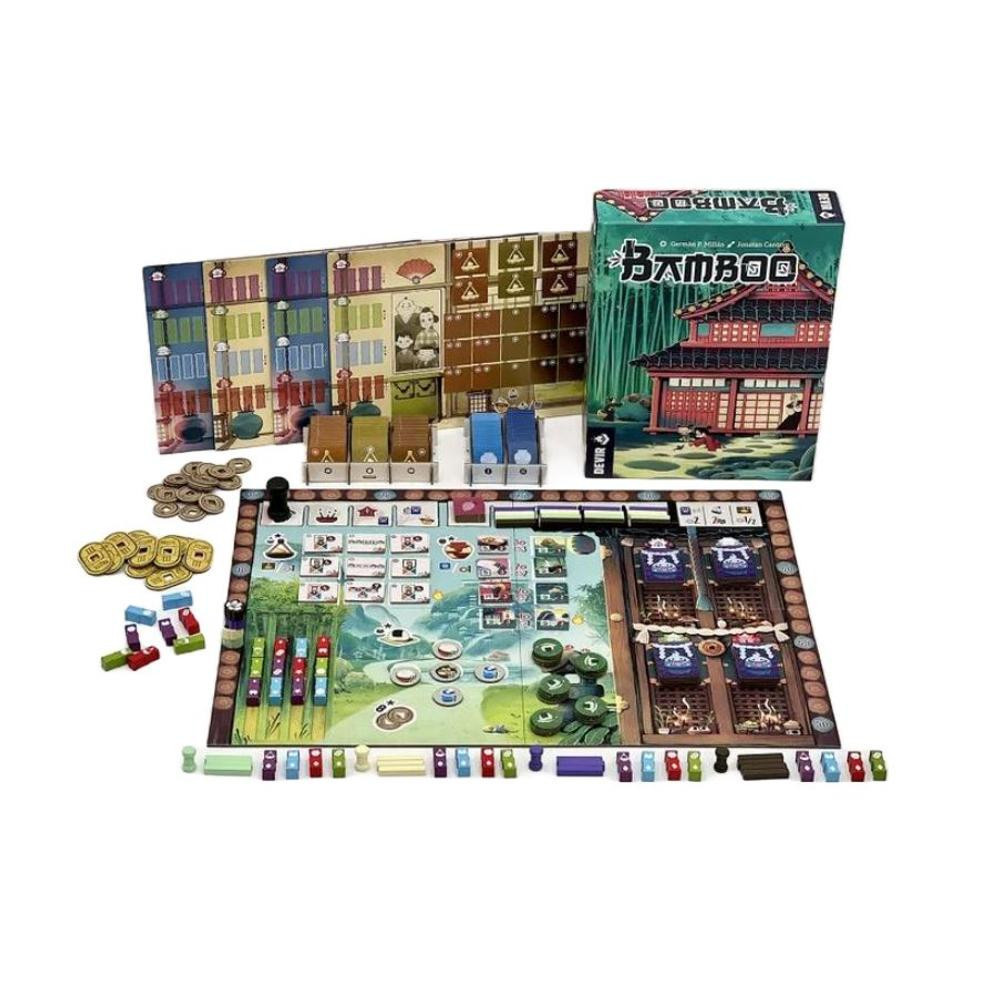 Képzeld el, hogy egy ázsiai bambuszültetvényeken boldoguló családfő vagy, aki a hagyományra építve próbál egyensúlyt és anyagi biztonságot teremteni. A BAMBOO egy izgalmas stratégiai társasjáték, amelyben a játékosok klánok élére állva, bambusztermesztésből igyekeznek családjuk jólétét megteremteni. Négy fordulóból álló kihívásokon haladsz végig, ahol a szellemek kegyeit keresed tömjén égetésével és különféle tevékenységekkel, mint főzés vagy lakásfelújítás. A télre való felkészülés kulcsfontosságú, és a játék menete egyszerre könnyen érthető, de stratégiai gondolkodást igényel. A doboz tartalma: 1 játéktábla, 4 személyes tábla, 64 otthon csempe, 68 egyensúly csempe, 2 csempe elosztó, 21 "Az erdő lelke" csempe, 4 templom csempe, 4 "Az erdő ajándéka" csempe, 1 kezdő játékos jelölő, 1 fázis jelölő, 36 bambuszdarab jelző, 51 érme, 26 étel számláló, 4 boldogság jelölő, 4 akció jelölő, 29 füstölőrúd jelző. Készülj a szellemektől vezetve és érj el sikert a családod számára!