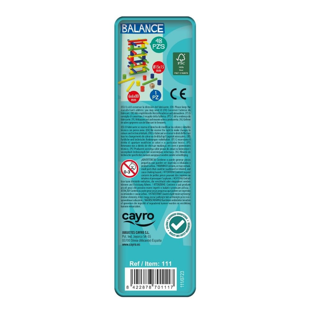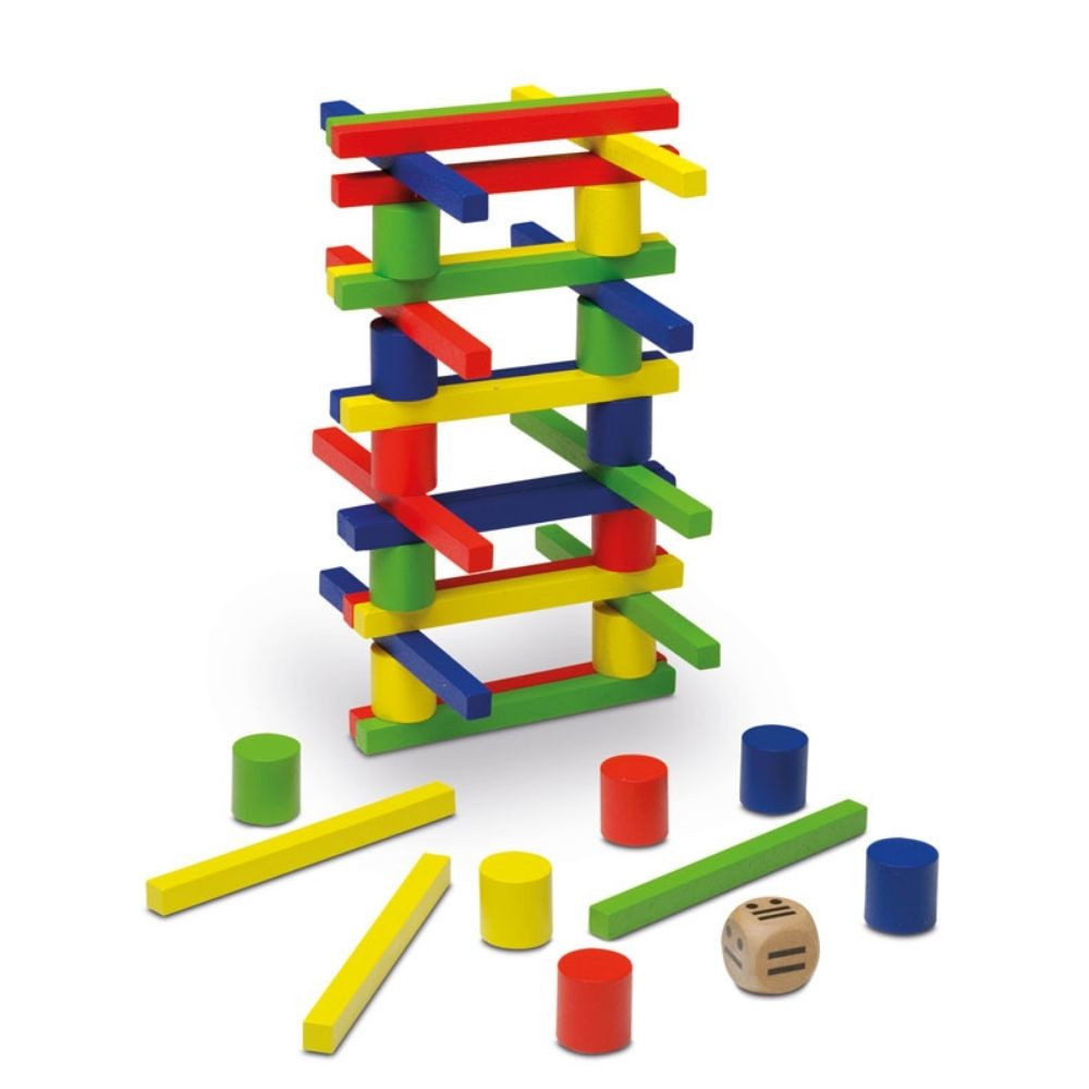 Ez a játék minden korosztály számára tartogat izgalmakat: fa elemekből kell stabil szerkezetet építeni, miközben minden új darab veszélyezteti az addigi egyensúlyt. A fémdobozos kivitelnek köszönhetően könnyen szállítható és tartós, ideális bármikor egy gyors, feszültségekkel teli partihoz. A játékosok felváltva helyeznek el egy-egy darabot a kialakuló toronyra. A cél egyszerű: ne dőljön le a szerkezet a te körödben! Bár a szabályok könnyen megérthetők, a játék pillanatok alatt kihívássá válik, mivel a súlypont és a finom mozdulatok jelentik a különbséget siker és kudarc között. A játék nyelve angol, de teljesen nyelvfüggetlen, így a szabályok megértése után bárki könnyedén játszhatja. Doboz tartalma: