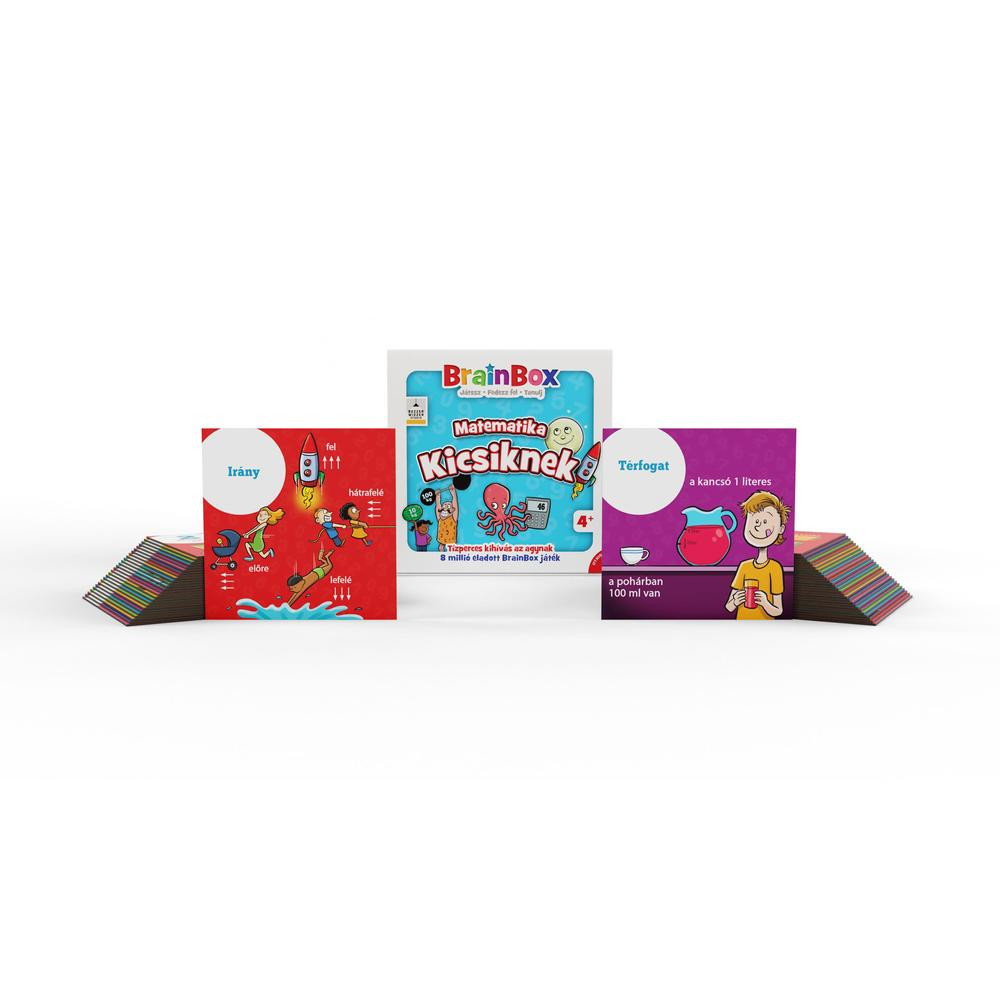 A BrainBox: Matematika kicsiknek egy szórakoztató és interaktív társasjáték, amely könnyedén vezeti be a gyerekeket az alapvető matematikai fogalmak világába. A játék során a résztvevők kártyákkal találkoznak, melyek segítségével számokat, formákat és alapműveleteket fedezhetnek fel. Minden kör izgalmas és pörgős, így garantált a gyerekek figyelmének megtartása, miközben fejlődik a memória és a megfigyelőképesség. A játék menete egyszerű: válassz egy matematikai tematika szerint összeállított kártyát, legyen 10 másodperced a részletek memorizálására, majd válaszolj a dobókocka által meghatározott kérdésre! Cél az, hogy minél több kártyát gyűjts össze helyes válaszokkal. A játék elemei: