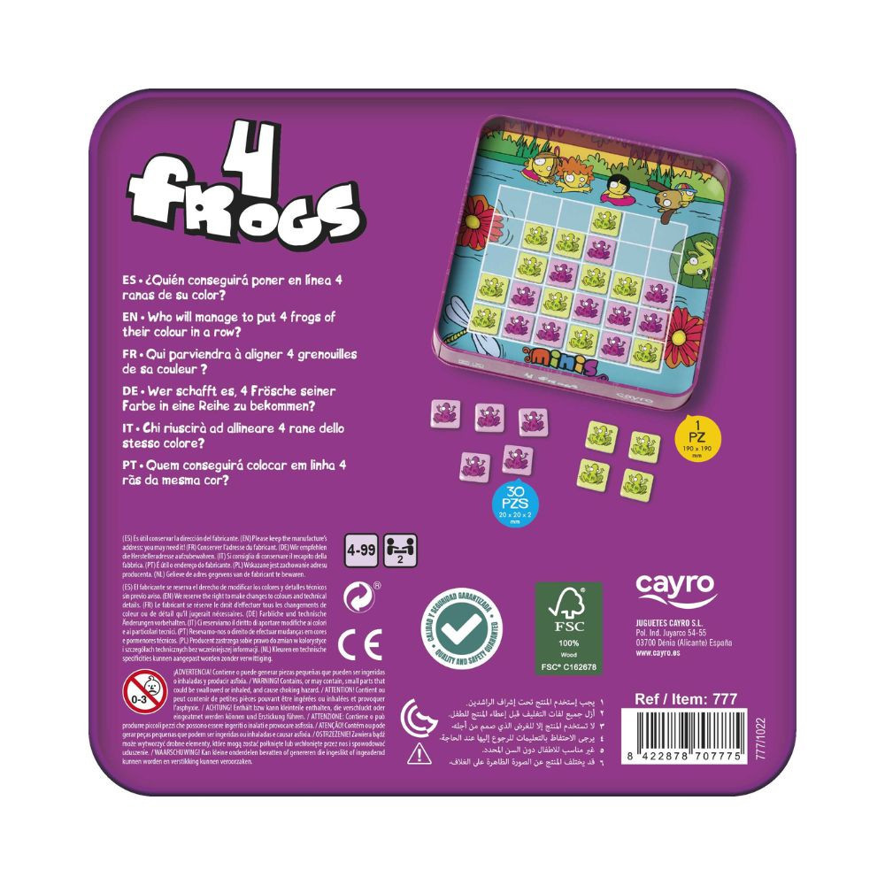 Merülj el a Mágneses Utazó amőba varázslatos világában, ahol békáidnak taktikai ugrásaival kell a négyes sorokat kialakítanod, miközben ellenfeled is hasonló célért küzd! Ez a mini társasjáték kétszemélyes kihívásra invitál, ahol a szórakozás garantált. A békák "repülése" akkor érvényes, ha alattuk támogató cella van, a cél pedig egy vízszintes, függőleges vagy átlós négyes sor felállítása. Bár a játék nyelve angol, a színek elrendezése mindent elmond. Tökéletes választás, ha gyors, kb. 10 perces versenyre vágysz, ahol a kisebbek, 4 évestől felfelé, ugyanúgy részt vehetnek. Paraméterek: