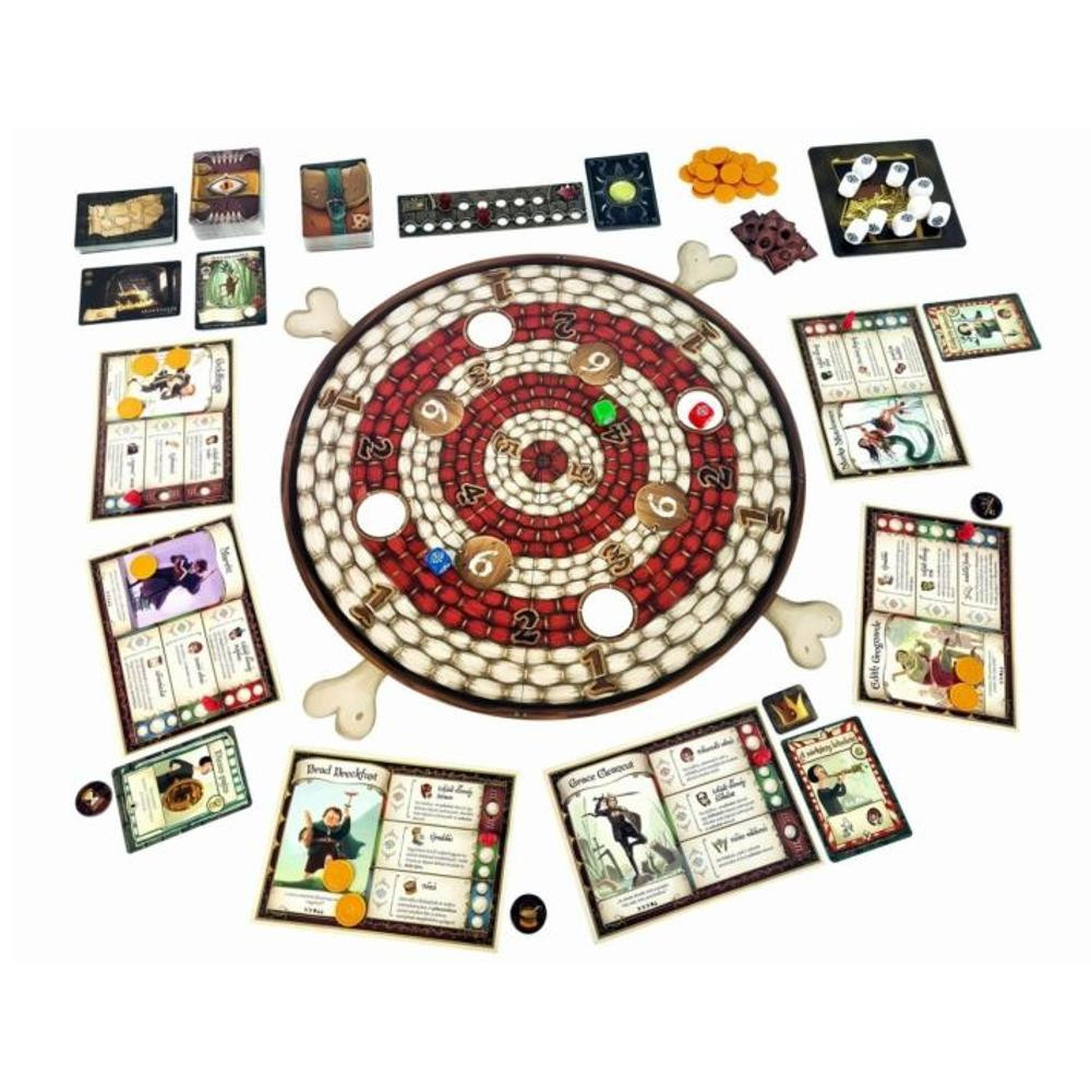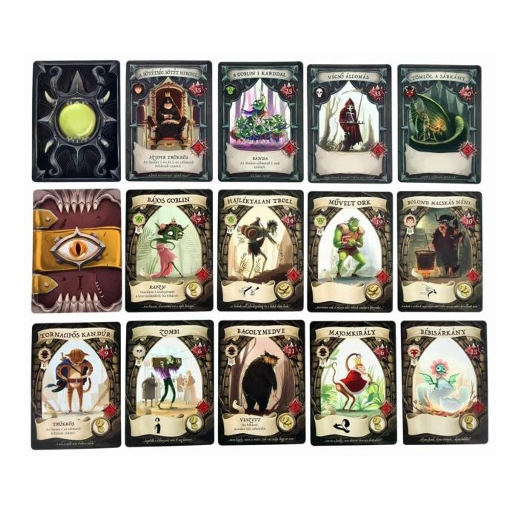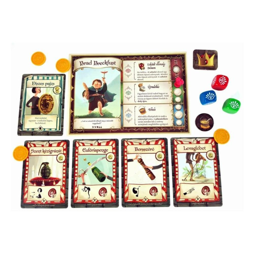 A hősök ideje még nem áldozott le! A Dungeons Fighter egy lebilincselő kooperatív társasjáték, ahol a rémséges tömlöcök szörnyűségeivel nézhettek szembe. Merészkedjetek le a félelmetes katakombákba és váljatok valódi hősökké! A játék kombinálja a kalandokat a humorral, ahol kártyahúzás és kockadobás viszi előre a történetet. Játékosok száma: 1-6 fő