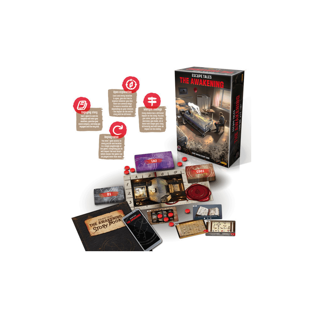 Fedezd fel a szabaduló szobák világát a saját otthonodban ezzel a különleges sztori alapú szabaduló paklival. Merülj el a rejtélyek és korlátlan puzzle megoldások világában, ahol nehéz döntések várnak rád. Légy részese Sam történetének, aki kétségbeesetten próbálja felébreszteni kómában lévő lányát. Egy különös, ijesztő kinézetű könyv és egy misztikus rituálé vezet majd egy másik dimenzióba, ahol szembe kell nézned legnagyobb félelmeiddel. Készen állsz az igazság kiderítésére?