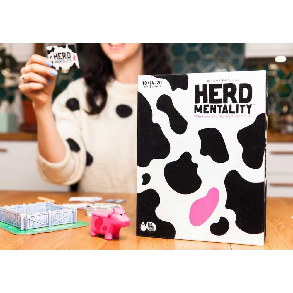 Engedd, hogy elkapjon a csorda szellem, és kaszálj nagyot a Herd Mentality angol nyelvű társasjátékban! Járjanak egyszerre a fogaskerekek a többiekkel, hisz a közös gondolkodás a lényeg. De ne feledd: ez egy verseny, ahol ha elveszítesz, a Rózsaszín Dühös Boci nehezíti meg a dolgod. Játssz taktikusan és érezd át a többiek gondolatait! A játék képes feldobni még a leguncsibb hétfő délutánokat is. A furábbnál furább kérdésekre olyan válaszokat adj, amiket szerinted mindenki más is választana. Minél többen mondjátok ugyanazt, annál jobb! De vigyázz, ne lógj ki túlságosan a sorból, mert a Rózsaszín Dühös Boci eljön, és azt senki sem akarja!