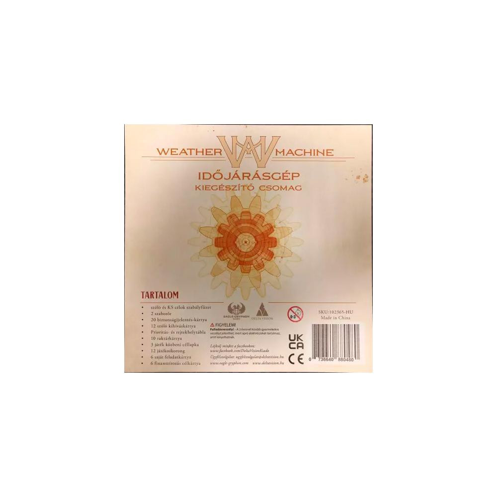 Az Időjárásgép társasjátékban te és barátaid szerepelhettek Sêni Lativ professzor társaságában, miközben az időjárás befolyásolását kutatjátok. A cél az árvizek, szárazságok és viharok megakadályozása, azonban minden beavatkozásnak következményei lehetnek a bolygóra nézve. A játékban a tudósok bőrébe bújva irányítjátok saját laboratóriumotokat, különböző helyszínekre juttok el, és megpróbáljátok a professzor hibás gépe által okozott szélsőséges időjárást korrigálni. A játék tartalma: