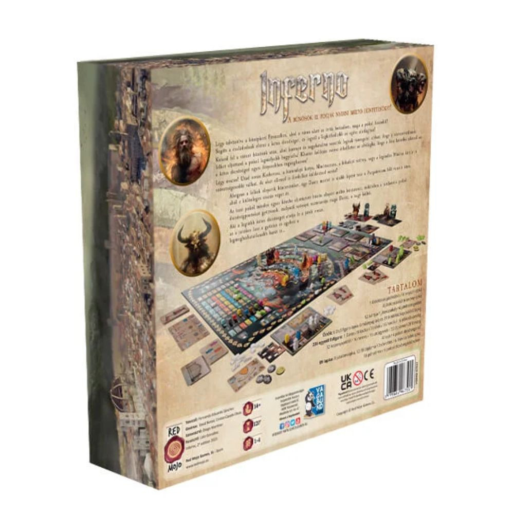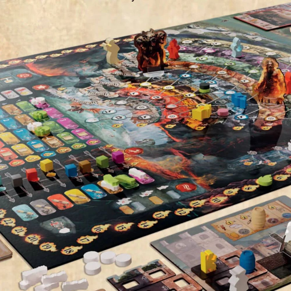 Lépj be Dante világába az új stratégiai játékkal, ahol Firenze politikai intrikái és a Pokol kilenc köre alkotják a hátteret. Ebben a lélekgondozós (soul-management) játékban 1-4 játékos irányítja a bűnös lelkeket, hogy eljuttassa őket az igazságos pokoli körbe, miközben a város politikai és társadalmi döntésein dolgoznak. A játék Inferno fázisában lelkeket juttatsz a Pokol körébe, míg a Firenze fázisban befolyást szerzel és leleplezel bűnösöket. A játék akkor ér véget, ha Dante elindul a Purgatórium felé, és a legtöbb Hírnévpontot gyűjtő játékos győz.
