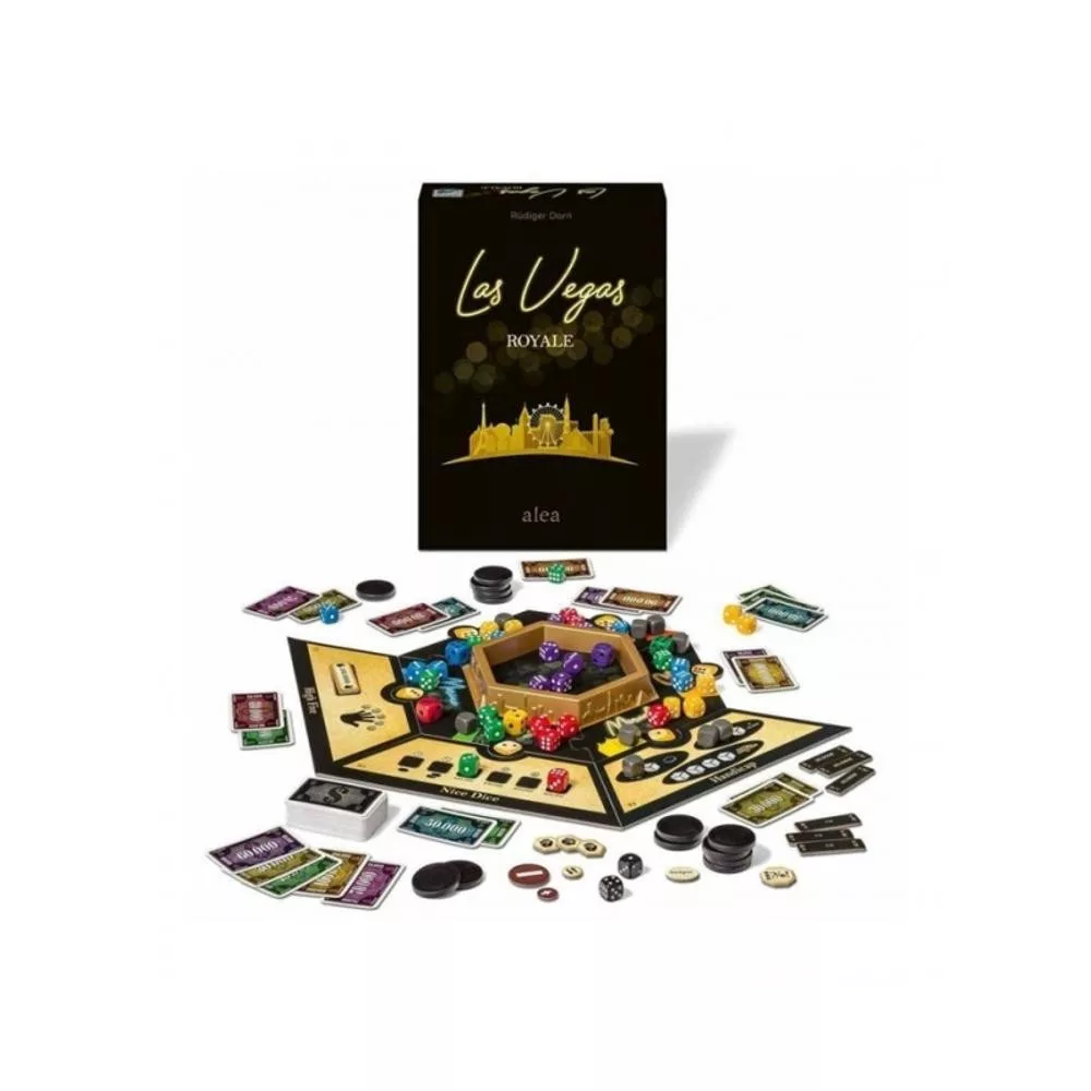 Lennél a kaszinó királya? Próbáld ki, mennyire vagy a szerencse fia, és látogasd meg a legrangosabb Las Vegas-i kaszinókat, ahol az a cél, hogy mindegyikben több mint 50.000 dollárt nyerj! Könnyen tanulható kockajáték, amit már 8 éves kortól játszhatsz. A játék a kockadobásra épít és a terület befolyásolás mechanizmusokra. Összesen hat kaszinóban próbálkozhatsz, a Las Vegas Royale pedig tizenkét kiegészítőt tartalmaz, hogy még izgalmasabb legyen. Minden kaszinóhoz véletlenszerűen elhelyezhetsz egy kiegészítő lapkát, amelyek speciális képességeket adnak, és a kockák elhelyezésével aktiválhatod őket. A kiegészítők között minden játékos számára van egy nagyobb kocka is, ami két kockának számít.