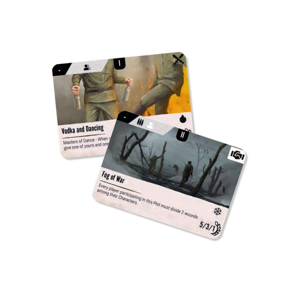 - 60 karakterkártya (frakciónként 15, köztük 2 tiszt)