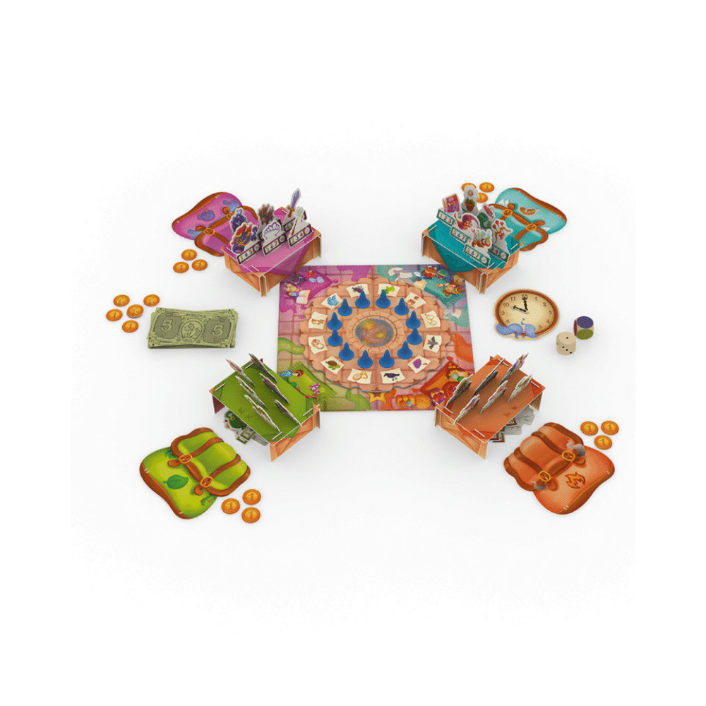 Kapd elő régi mágikus tárgyaidat a padlásról! A Magic Market remek hely, hogy végre pénzt keress a poros kincsekkel. Cserélgess, alkudozz, és végül te legyél az, aki a legtöbb dragoval távozik a piac bezárásakor! A játék tele van izgalmas kockadobásokkal és okos market stratégiákkal, így biztosan leköti majd a figyelmed. A játékidő körülbelül 30 perc, és 2-4 fő játszhatja, akár már 6 éves kortól. Senki sem távozik üres kézzel, ha elég drago-t vagy hajlandó költeni!