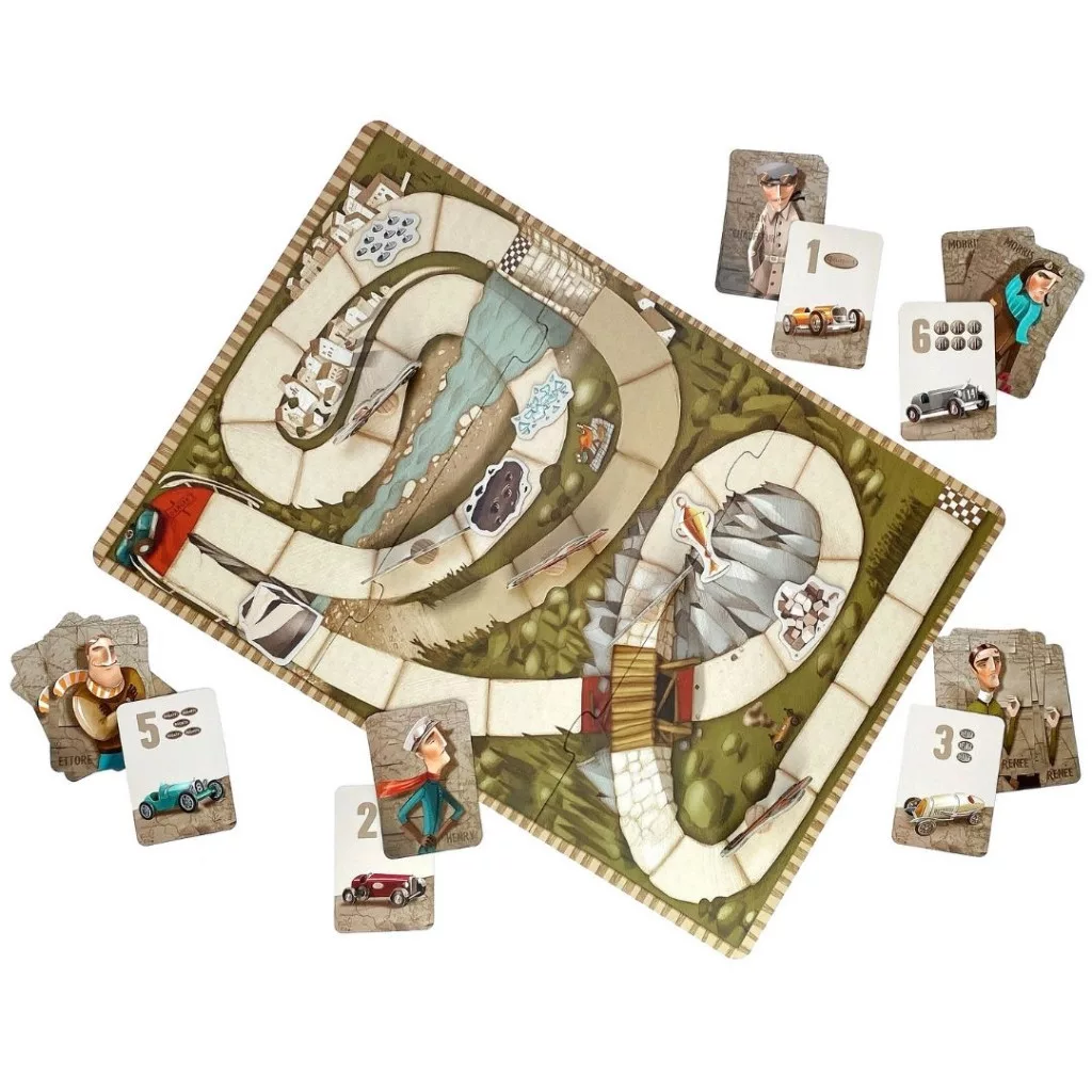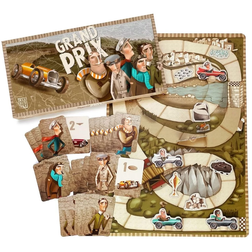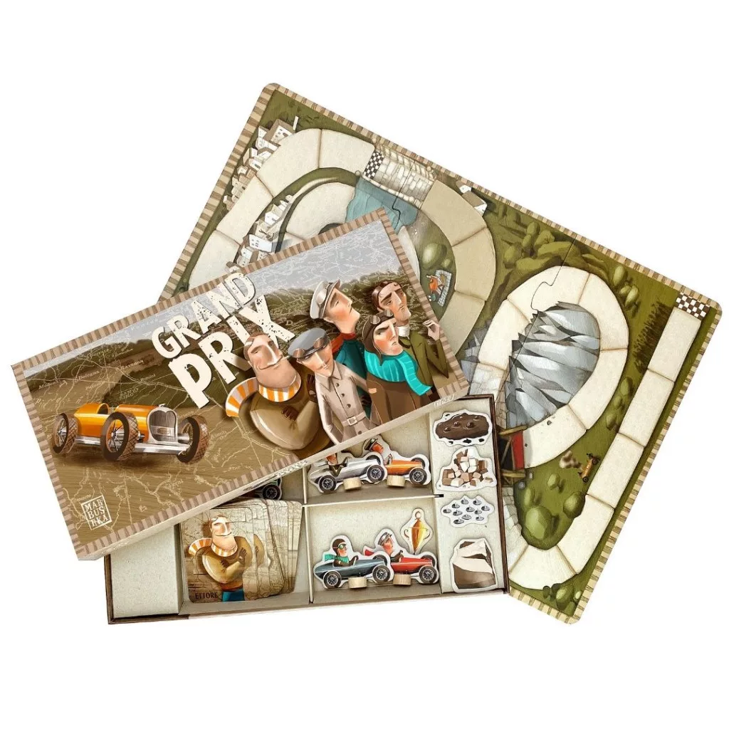 Éld át a versenyzés izgalmát a Marbushka Grand Prix társasjátékkal! Az autóversenyek történetét megelevenítő játék igazi kihívást és szórakozást nyújt kicsiknek és nagyoknak. A barátságtalan pályák, a leküzdendő akadályok és az elengedhetetlen szerencse segítségével dől el, ki lesz a leggyorsabb. A játék tartalmaz egy művészien kidolgozott játéktáblát, 5 fa autó versenyzőkkel, 30 kártyát, 5 akadályt és egy praktikus vászontasakot.