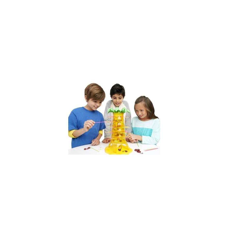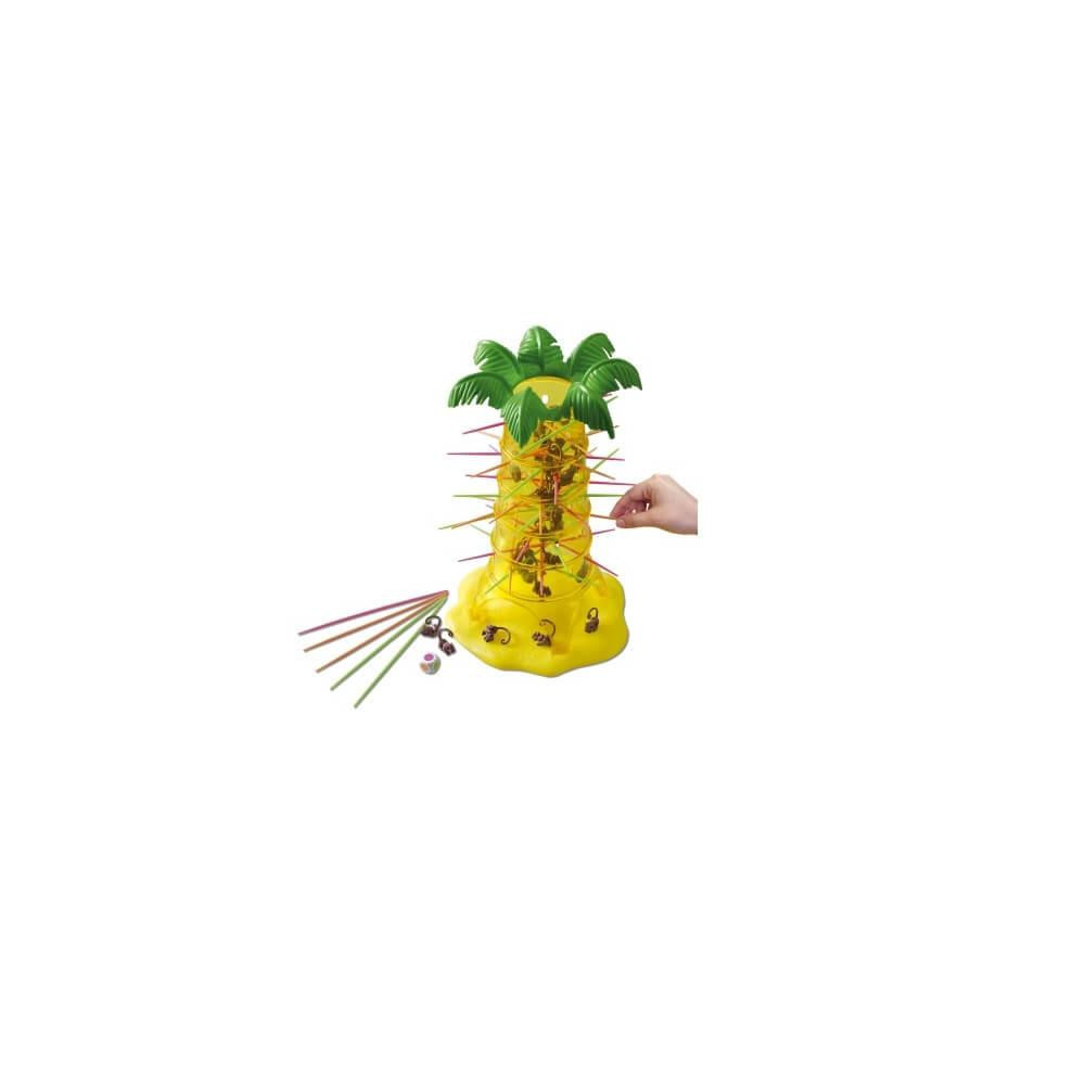 A "Bukfencező majmok" egy rendkívül szórakoztató társasjáték gyerekeknek. Cél, hogy minél több majmod maradjon fenn a pálmafán. Dobj a színes dobókockával és húzz ki egy pálcikát a pálmafából! Ügyességeddel megmentheted a majmokat, akik a kunkori farkukkal kapaszkodnak az ágakba. A játék tartozékai: egy pálmafa, 30 színes pálcika, 30 majom és egy színes dobókocka. Rendeld meg most és élvezd a nevetéssel teli játékélményt!