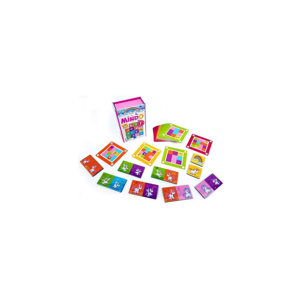 Segíts az eltévedt unikornisnak megtalálni a barátait, és éljetek át egy varázslatos kalandot a hazafelé vezető úton! Forgasd a lapkákat, amíg a feladatkártyán látható mintát meg nem jeleníted – ehhez összpontosításra és figyelmes tervezésre lesz szükséged. A 60 különféle kihíváskártya és 4 nehézségi szint izgalmas játékórákat garantál. A Mindo játékok különlegessége a kreatív feladatokban rejlik, melyek segítik a vizuális megfigyelőképesség, logikus gondolkodás és koncentrációs készség fejlesztését. Játszhatsz egyedül vagy többjátékos módban, más Mindo termékekkel kombinálva.