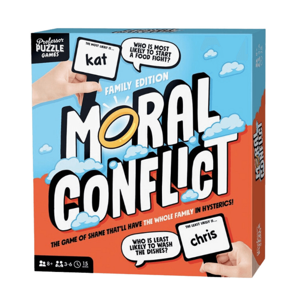 Készülj fel egy nevetéssel teli estére a "Moral Conflict: Family Edition" társasjátékkal! Ebben az izgalmas játékban kiderülhet, hogy ki a "legszófogadóbb" a család és barátok között. Az angol nyelvű társasjáték tele van vicces helyzetekkel és váratlan fordulatokkal, miközben mindenki felfedi saját és mások elrejtett titkait. A cél egyszerű: derítsd ki, ki a legvalószínűbb, hogy belekerül egy adott komikus helyzetbe. Játékosok száma: 3-6 fő.