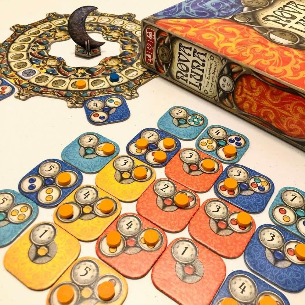 Az új hold a megújulás szimbóluma, amely remek alkalom arra, hogy új dolgokba vágj bele. A Nova Luna társasjáték során tervezd meg minden köröd elején, hogy mi lesz a következő lépésed, az aktuális Hold állása alapján. A játék célja, hogy előbb teljesítsd az elvett lapkáid logisztikáját, mint ellenfeleid. A Nova Luna egy családi társasjáték 1-4 fő számára, amely átlagosan 30-60 perces játékidőt kínál, és már 8 éves kortól ajánlott. A játékosok egy központi játéktérről, úgynevezett "holdkerékről" vesznek el lapkákat, amiket a személyes területükre helyeznek. Mindezt a játékosok körsorrendje határozza meg: mindig a leghátul lévő játékos kezdi a kört. A lapkák különféle követelményeket tartalmaznak, és ezek teljesítésével saját korongjaikkal lefedhetik azokat. A játék addig tart, míg valaki összes korongját felhasználja, vagy elfogynak a lapkák a játékból. Ha egy absztrakt lapkalehelyezős játékban próbálnád ki magad, a Nova Luna tökéletes választás lehet!