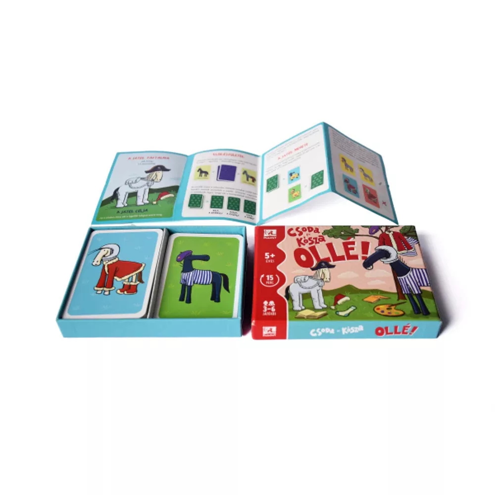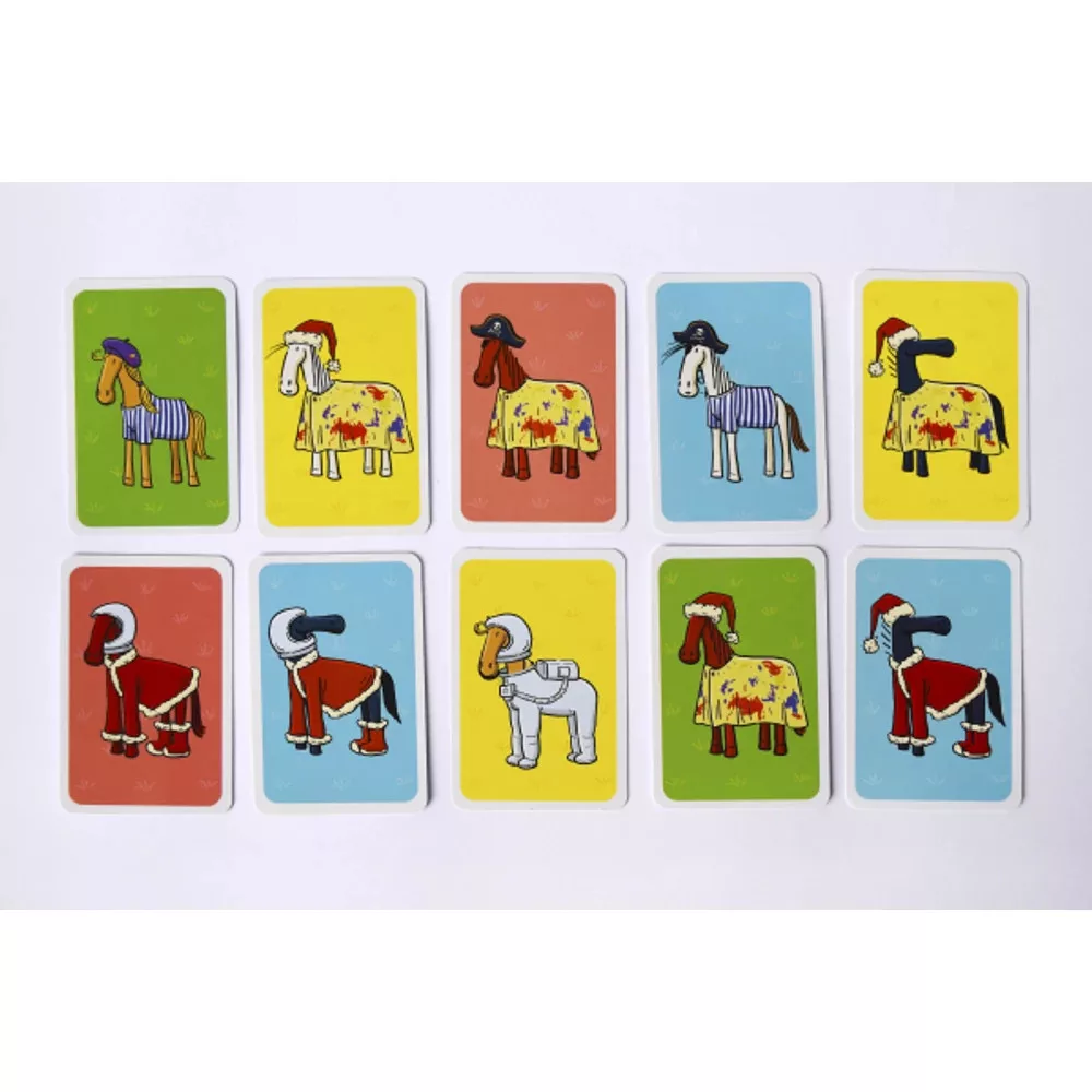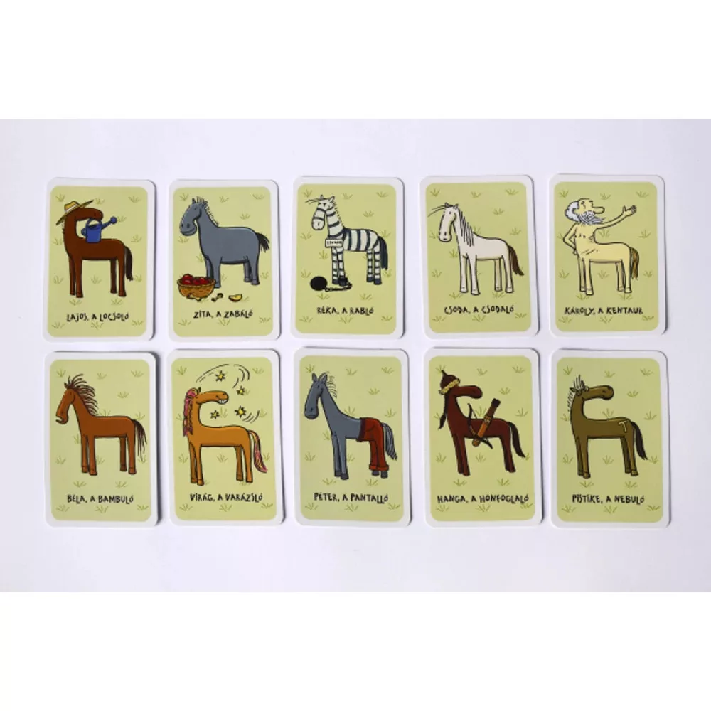 Csoda és Kósza egy valódi káoszba keveredtek, amikor Sajó bácsi és Gyöngyi néni szekrényét felforgatva mindenféle eszement ruhát öltöttek magukra. Beöltöztek kalóznak, a Mikulásnak és még bohókás szetteket is kreáltak. Még Kanca Mancit és marslakó barátjukat is meghívták vendégségbe. A játék lényege, hogy légy résen, amikor a lovakon ugyanolyan ruha van, és azonnal kapd el őket! Vágj bele a Csoda és Kósza kalandos kártyajátékába, ahol a két figura bohókás ruhákat visel, és a te feladatod, hogy elkapd őket, ha ugyanolyan öltözetben vannak. Minden játékosnak van szereplapja, és a többiek megjegyzik a nevét. Ha mindkét ló-lapon ugyanaz a hacuka, kiáltani kell a másik nevét. Ha helyes nevet mondasz, a tied a kártya! Ha tévedsz, a paklid a másikhoz kerül. Ruhátlan lovak esetén jokert kapsz, így újra megnézheted a másik játékos nevét, ha elfelejtetted volna. A játék akkor ér véget, ha minden húzókártya elfogy. A legnagyobb paklival rendelkező játékost hirdetik ki győztesnek. Csatlakozz ebbe a vidám, bolondos játékba!