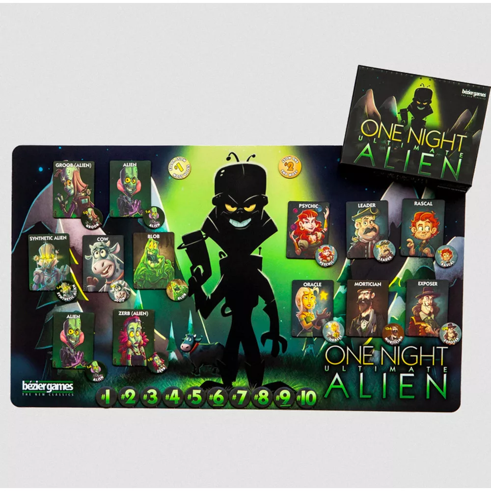 Nem vagyunk egyedül! És ők nem békével jöttek. Nincs közvetítő, nincs kiirtás, és nincs hova rejtőzni. A faludat megszállták a földönkívüliek! A One Night Ultimate Alien egy pörgős, 10 perces kártyajáték, amely során mindegyik játékos külön szerepet kap. Este alatt kell megszerezni a lehető legtöbb információt és kaotikus helyzetet teremteni! Reggelre ki kell találni, ki a földönkívüli köztetek. Ha sikerül azonosítani egyet, a falusiak megnyerik a játékot! Rendeld meg most!