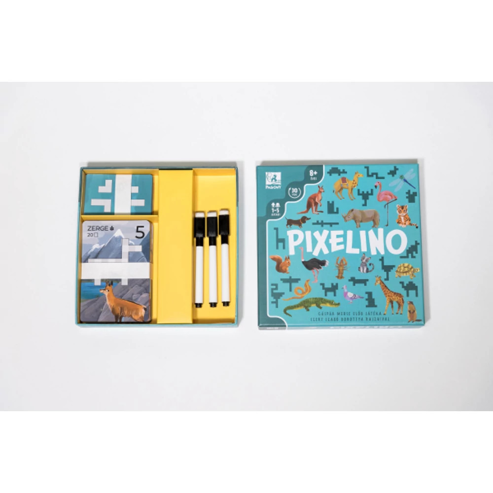 Ahogy körbeutazol a Föld körül, megörökíted a különböző élőhelyek állatvilágát. A Pixelino egy izgalmas és szórakoztató társasjáték, amelyben a gyerekek kreativitásukat és stratégiai gondolkodásukat fejleszthetik. A játék során az állatok világába merülve kell kitölteni az állatkártyákat különböző formájú tetrisz elemekkel. Minél ügyesebben oldod meg a feladatokat, annál több pontot gyűjthetsz! A játékmenet egyszerű, ám figyelmet és előre gondolkodást igényel.