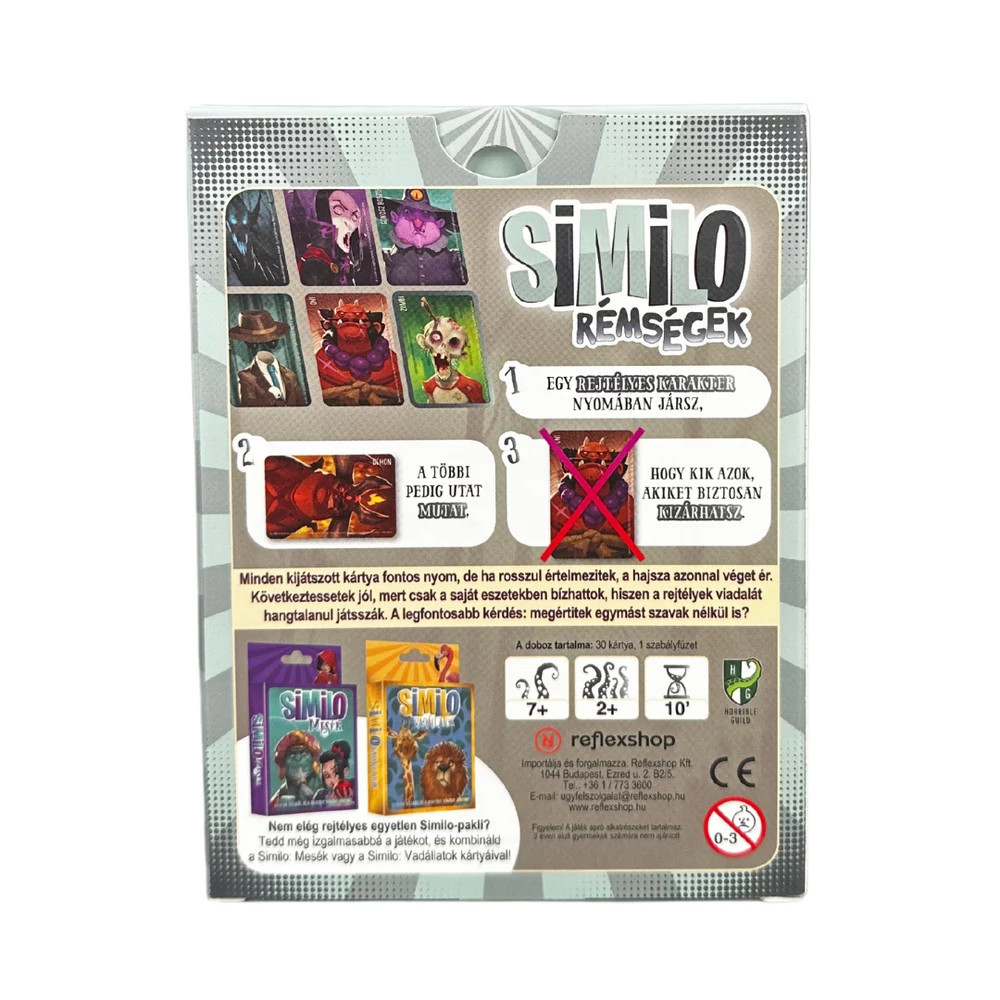 Az asztalhoz ülve csend támad, a tekintetek találkoznak, és mindenki a titkok jeleit vizslatja—vajon ki a titokzatos alak? A kezedben lévő kártyák fontos nyomokat rejtenek, és minden lépés közelebb visz a rejtély megoldásához. A sötét éjszaka rémálomszerű világa életre kel, várva, hogy felfedezd a titkos karaktert a hátborzongató Rémségek Similo pakli segítségével. Izgalmas deduktív játék, ahol a csapatmunka, az intuíció és a finom megfigyelések vezetnek sikerre. Tartalma: