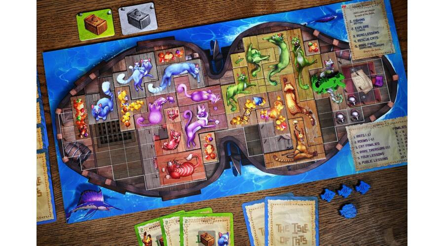 Macskák szigete: Hajócsomag kiegészítő 6 új hajót vezet be a Macskák szigete alapjátékba, amelyek mindegyike egyedi formájú és új elrendezésű. Akár a normál, családi vagy a szóló módban játszol, ezek az új hajók megkövetelik, hogy újraértékeld a lehetőségeidet, új stratégiákat találj ki, és új módokat találj arra, hogy macskákat, cicákat és bestiákat helyezz el a hajódon.