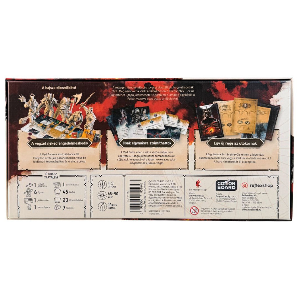 A Vad Falka kiegészítő egy új és izgalmas történetet, valamint egy új játékmódot kínál: egy a többiek ellen. Válj a Vad Falka részévé, tünde harcosokká, akik Cirit szeretnék elfogni. A többi játékos hősként együttműködve próbálja megakadályozni őket. Egyedül is játszhatsz a Vad Falka Automa ellen! A játék során a Vad Falka tábornokai haladnak előre, a hősöknek pedig színeket kell párosítaniuk, hogy győzedelmeskedjenek. A játékosok két csapatra oszlanak: Vad Falka vs. Hősök, és a csapatok együtt nyerhetnek győzelmi pontokat. Készen állsz a kihívásra?