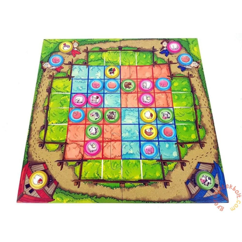 Kaotikus állapotok: Amint a gazda elment, az állatok kiszabadultak a legelőre... és nem meglepő, Te is közrejátszottál, amikor kinyitottad a pajta ajtaját! Most rajtad a sor, hogy rendet tegyél: az állatok igényei szerint szervezzük meg őket, ügyelve, hogy mindegyik a kedvenc szomszédja mellett legelhessen. A Stratégák küzdelme: A cél, hogy az egyik legelődön 9 mezőn összegyűjts két tehént, két malacot, két bárányt és két csirkét, plusz még egy tetszőleges állatot. Vagy győzhetsz azzal is, ha 12 állatot gyűjtesz össze. Ha három azonos állatot tudsz vízszintesen, függőlegesen vagy átlósan sorba rakni, az összes állatot leszedheted a tábláról, kivéve az éppen letett állatot.