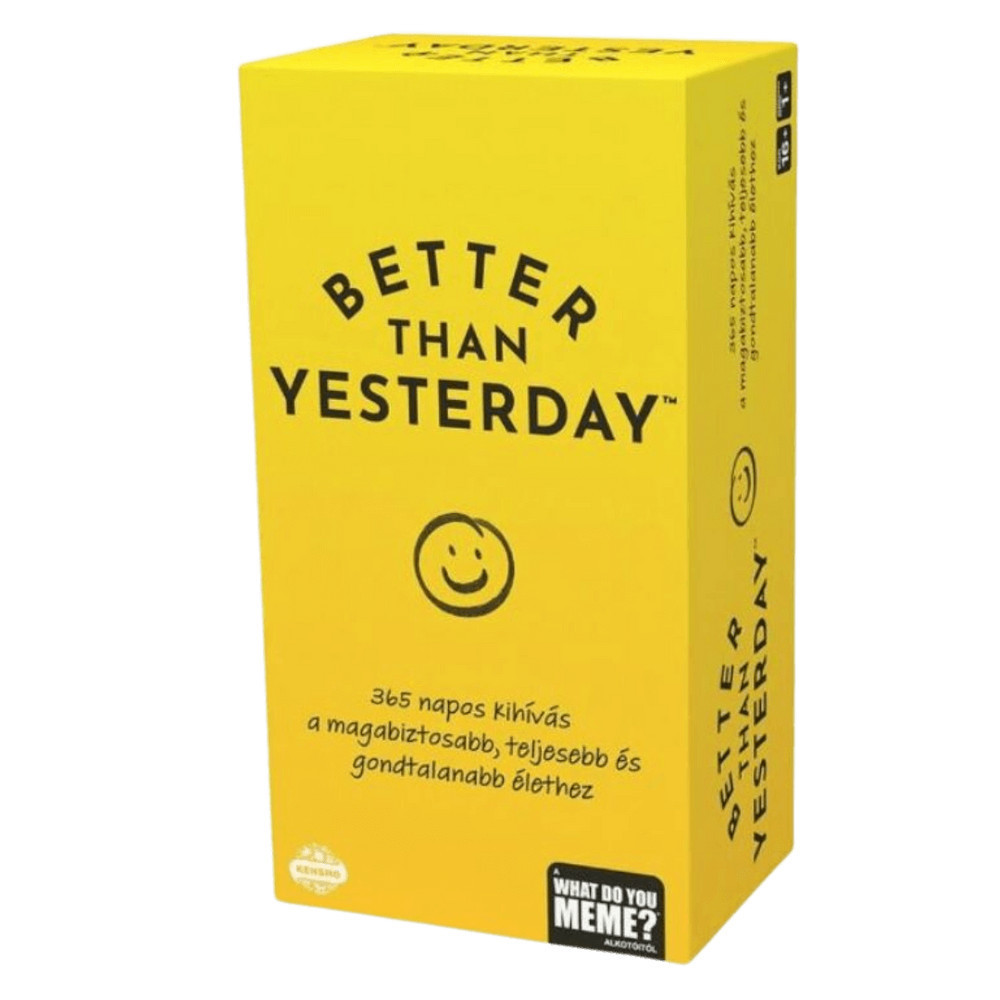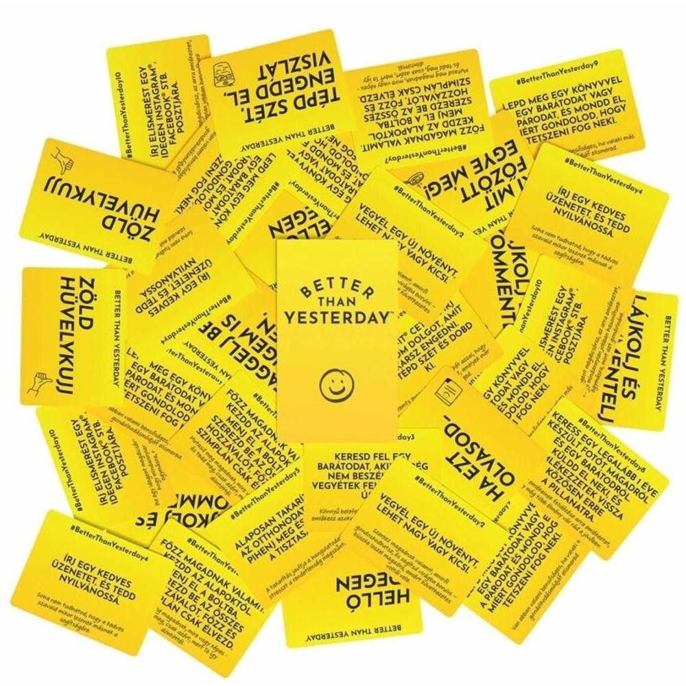 Fedezd fel saját korlátaidat és fejleszd önmagad a Better Than Yesterday játékkal! Minden nap egy újabb kihívás vár rád, amely segít kiszakadni a komfortzónádból és gazdagabb életet élni. A dobozban 365 izgalmas feladat található, amelyek közül némelyek kihívást jelentenek, míg mások könnyebben teljesíthetők. Miután végigmentél az összesen, észreveszed majd a változást magadon. A doboz tartalma: 365 napi kihívás kártya és egy útmutató. Korosztály: 16+ év.