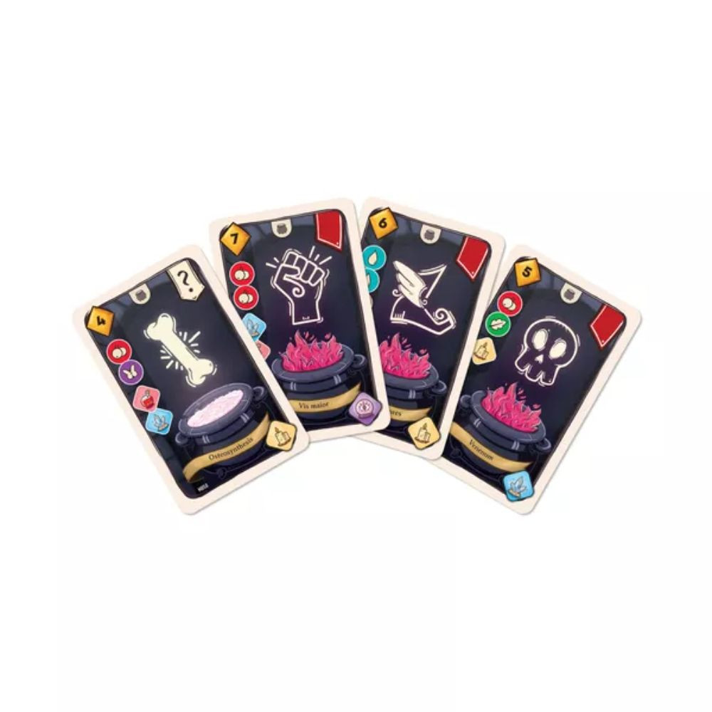 Fedezd fel a boszorkányok titkos világát és vezess saját klánt ebben a varázslatos társasjátékban! Toborozz boszorkányokat, gyűjts alapanyagokat a potions készítéséhez, és döntsd el, hogy melyik műhelyben dolgozzanak. A játék során erőforrásaidat taktikusan kell felhasználnod: fejlessz, vagy versenyezz más klánokkal a pontokért. A reputációd növekedése előnyöket nyújt, így fontos, hogy munkád gondosan kivitelezett és értékes legyen. A győzelemhez gyűjts össze minél több pontot és reputációt!