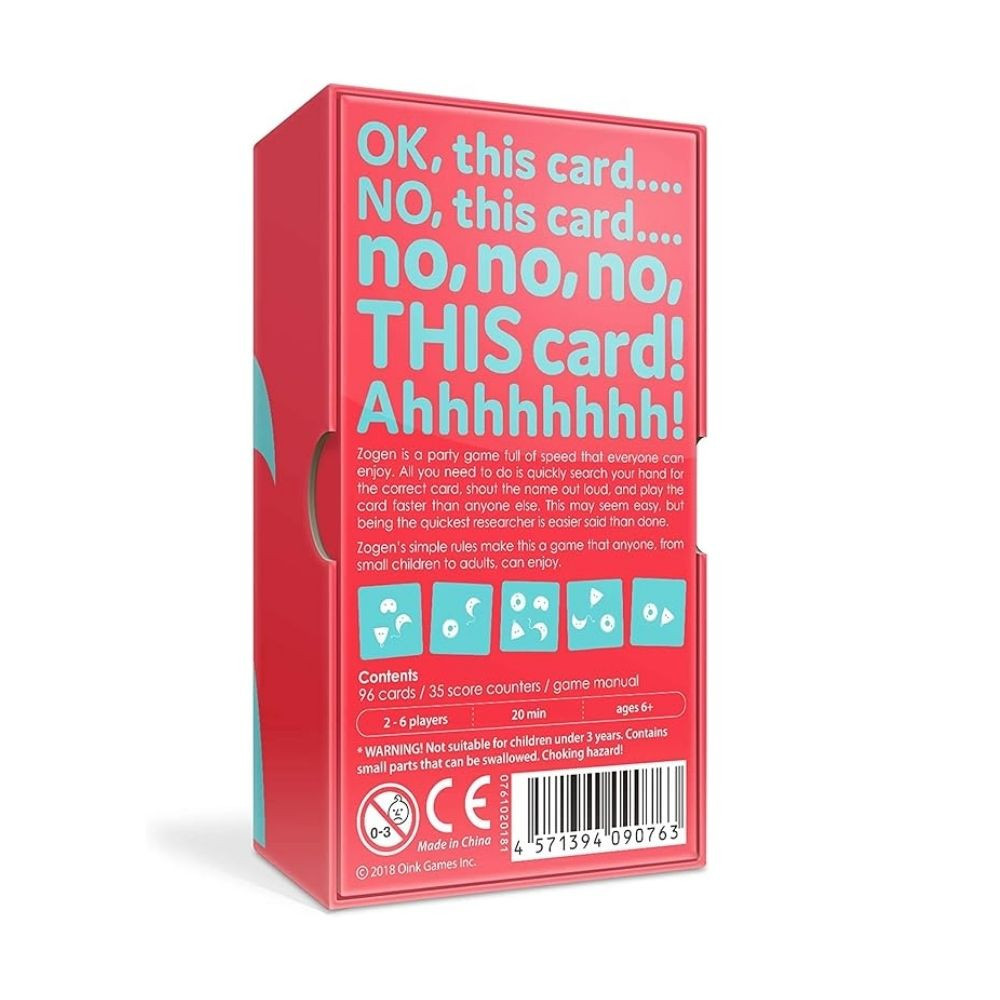 Válj mikrobiológussá, aki villámgyorsan megszabadul a káros mikroorganizmusoktól a laborban! A Zogen társasjáték célja, hogy elsőként dobd le az összes kártyádat, akár egy kis blöfföléssel. Légy azonban óvatos, nehogy lebukj! A játék során különböző mikroorganizmusokat ábrázoló lapokat kell dobálni, figyelve az egy mikrobiális eltérésre. Ha hibát követsz el vagy blöffölsz, és lebuksz, vissza kell venned a lapjaidat. A játék addig tart, amíg valaki eléri a 7 pontot, és megnyeri. 2-6 játékos vehet részt, 15-20 perces menetekkel, és már 6 éves kortól élvezhető.