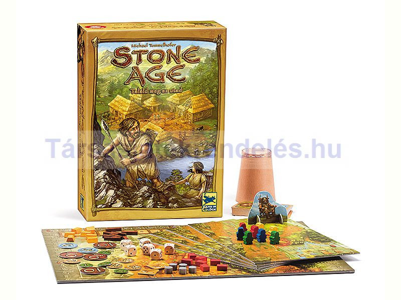 Stone Age - egy izgalmas utazás a múltba. Valóban nehéz idők voltak, amikor őseink hajlott háttal a faeke fölé görnyedve szántották a földet. A fejlődés azonban már akkor is feltartóztathatatlan volt. A jó szerszámok és a gazdag termést hozó magvak egyszerűbbé tették a munkát, és megkönnyítették az életet. Ebbe a korba lépünk be a Stone Age játékkal, ahol a kőkorszak megpróbáltatásai várnak. Fát kell vágni, követ kell törni és aranyat kell mosni a folyóban. Ezen áruk csereberéjével gazdagíthatjuk és bővíthetjük falunkat, hogy ezáltal a civilizáció újabb szintekre léphessen. Ez izgalmas és lenyűgöző, de a szerencse majdnem olyan fontos, mint a jó tervezés. És minden forduló után elegendő ételt is kell biztosítanunk az embereinknek. Több út vezet a célig, minden játékos a saját maga útján érheti el a célját, de csak a végén derül ki, hogy melyik volt a helyes út.