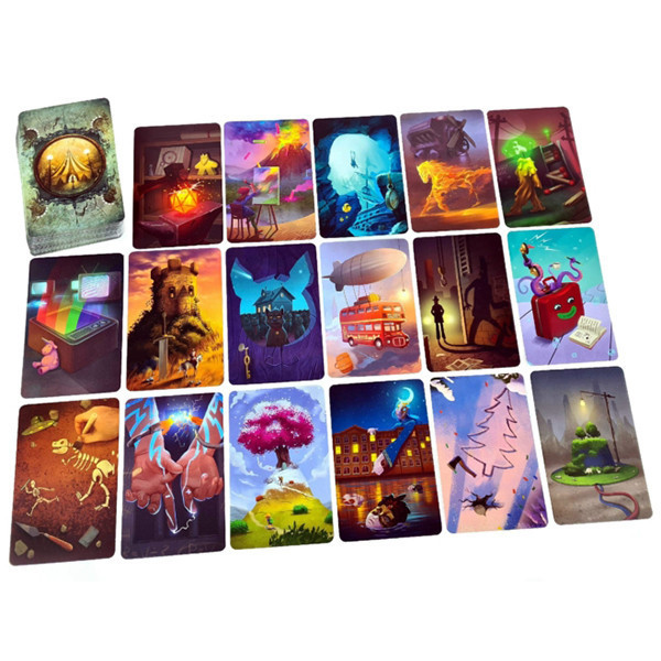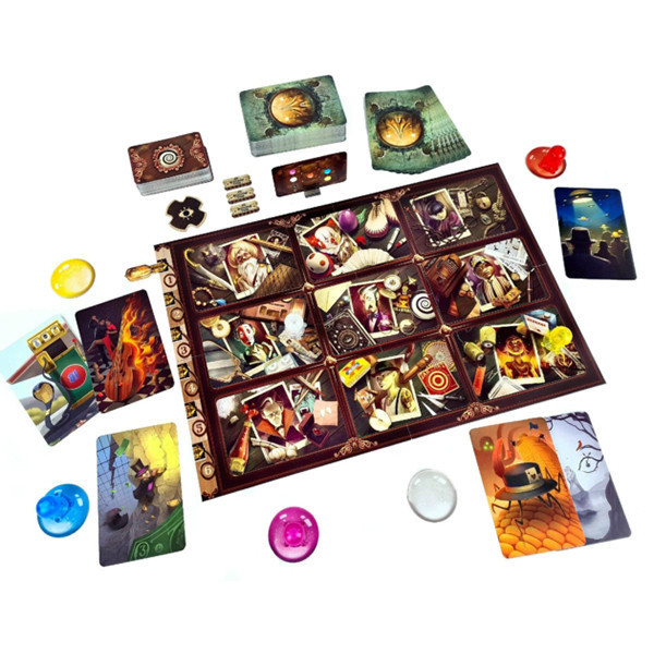 A gyönyörű és nagyon jó minőségű dobozban 84 látomáskártya, 20 karakterkártya és 20 helyszínkártya található. Ehhez jön még 60 cselekménykártya a szellemek számára.