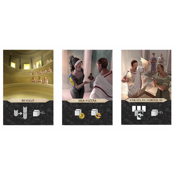 Az Agora kiegészítő behozza a játékba a politikai győzelem lehetőségét, így az eddigi három helyett, most már négy különböző módon tudjuk legyőzni ellenfelünket! Itt az idő, hogy kipróbáljátok, hogy vajon képesek vagytok-e többséget szerezni a szenátusban és elnyerni a nép bizalmát.