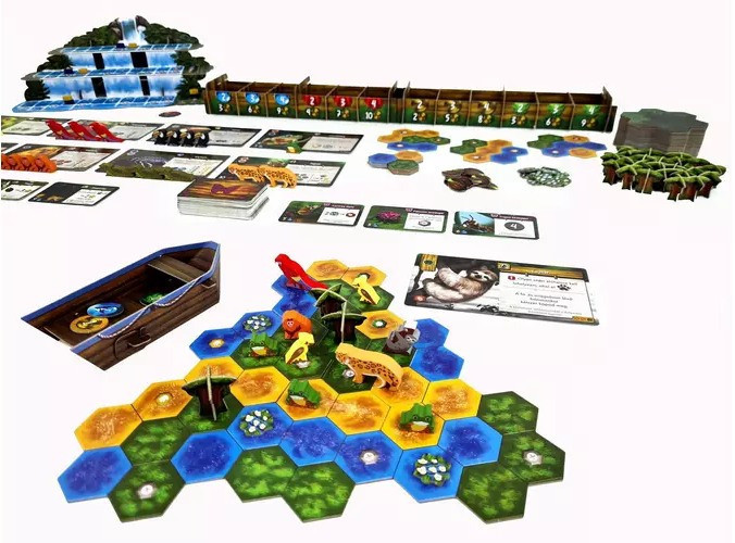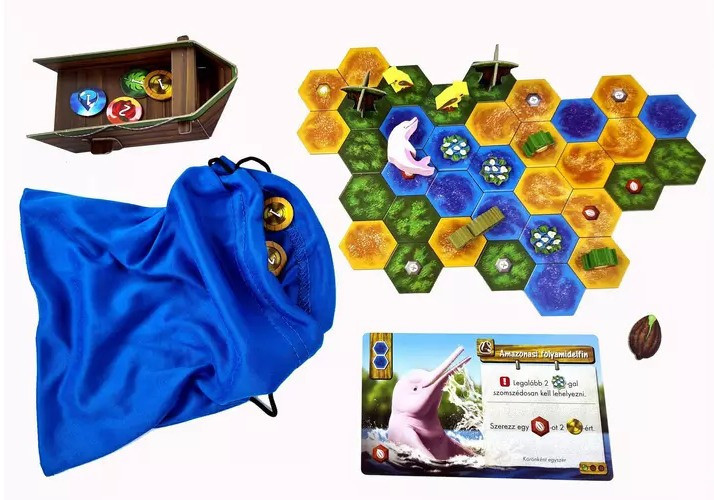 Megjelent a különleges állatmeeple-öket és 3D-s vízesést tartalmazó társasjáték, az Amazónia! Ez az összetettebb, akcióválasztós családi társasjáték rengeteg különleges alkatrésszel vár rád.