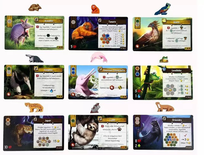 Az Amazónia célja, hogy a játékosok harmonikus természetvédelmi területet építsenek ki az őserdő állatai és növényei számára. Fedezd fel az esőerdők különleges állatait, rovarjait és növényeit ebben a gyönyörű társasjátékban!