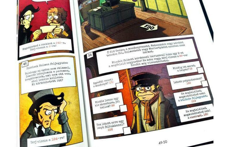 A Sherlock Holmes egy játékkal kombinált képregény, egy cím a sorozatban, amelynek alcíme: "A képregény, amelyben te vagy a hős". Egy karaktert testesítesz meg egy magával ragadó történetben, amelyben a döntéseid irányítják a fejlődésedet. Van egy, a szerepjátékokban használtakhoz hasonló karakterlapod, amely nyomon követi a vagyonodat, a különleges képességeidet, az érméidet és a győzelmi pontjaidat. A játékmenet általában abból áll, hogy követed a képregény paneleit - amelyek nyomokat, rejtvényeket és csapdákat tartalmaznak -, és döntéseket hozol arról, hogy hova menj és mit tegyél, miközben a vizuális érzékelésedet használod a nyomok összegyűjtésére és arra, hogy elég okos legyél a rejtvények megoldásához. Mint minden játékban, itt is lehet veszíteni - néha nagyon csúnyán! 1 játékos részére, 10 éves kortól.