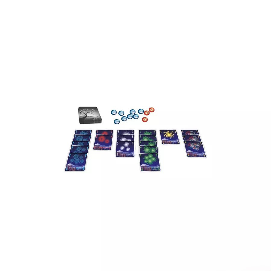 A Hanabi egy kooperációs kártyajáték egy kis dobozban, melyben tűzijátékparádét kell terveznetek együtt, egymás segítségével. A gyönyörű kivitelezésű játék japán stílusjegyeket hordoz magában,többek között a különböző színű tűzijátékokon különféle formájú tűzvirágok pompáznak. A játék izgalmas és újszerű játékmechanizmusa szerettette meg oly sok mindenkivel ezt a játékot. A játékosok célja a játékban, hogy minden színből számsort építsenek az egyes számmal kezdve és az ötössel befejezve. Igen ám, de a játékosok a kezükbe kapott lapokat csak kifelé fordítva tarthatják (a számos oldalukkal a többiek felé) a játék során, így csak a társaik kártyáit láthatják, sajátjukat viszont nem. Itt köszönt be az együttműködés. Minden körben egy akciót választhat a játékos, amikor rá kerül a sor: vagy kijátszik a kezéből egy lapot, vagy rámutatnak egy társa kezében lévő egyforma színű vagy számú lapjaira, így üzenve neki. A lapok kijátszása is csak a jó sorrendben történhet, különben az Istenek haragja utolér minket! Meg van szabva az is, hányszor utalhatunk egy játékos lapjaira, ettől válik izgalmassá a játék, ami addig tart, míg el nem fogy a húzópakli. A csapat annyi pontot (és ezáltal olyan mértékű hírnevet) szerez, amennyi a különböző színekből álló tűzijátékok legértékesebb lapjainak összege. Jól meg kell gondolni, melyik akcióval, és melyik társunkat segítjük, mert a lehetőségek száma véges, az idő fogytán, a közönség pedig tombolni fog, ha nem lát színvonalas műsort. Hajrá, tűzijátékos kalandokra fel, játékosok! Ropogjanak azok a petárdák!