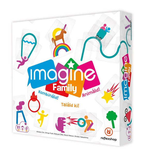 Megérkezett a méltán népszerű Imagine társasjáték családi kiadása az Imagine Family! Akárcsak az alapjátékban, az Imagine Family társasjátékban is csupán a képzeleted az egyetlen határ! A 60 átlátszó kártya segítségével vezesd rá a többieket a helyes megoldásra! Ebben a változatban a kártyák színesek, a feladványokat pedig gyerekek tesztelték, így a szórakozás garantált mindenki számára. "Keltsd életre" a kártyákat és mutasd meg, hogy te vagy az asszociációs játékok királya!