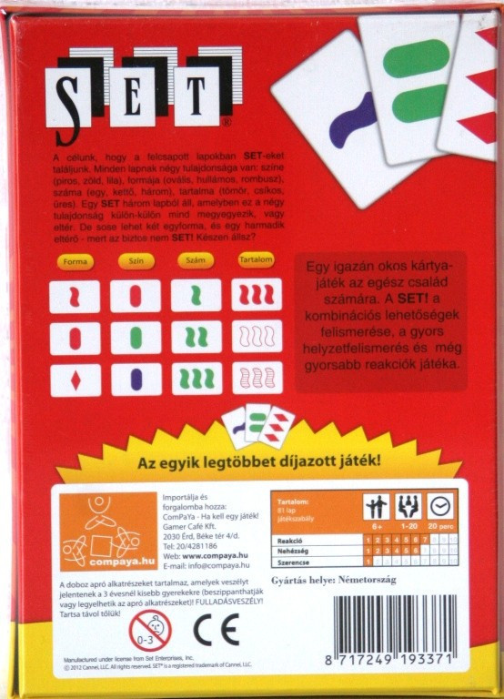 Három kártya akkor alkot Set-et, ha a fenti négy tulajdonság mindegyikénél igaz a következő feltétel: