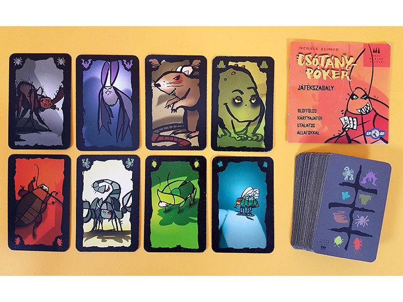 - 56 állatkártya (8-8 a következő állatok képeivel: denevér, légy, csótány, varangy, patkány, skorpió és büdös bogár)