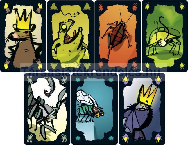 - 56 állatkártya (8-8 a következő állatok képeivel: denevér, légy, csótány, varangy, patkány, skorpió és büdös bogár)