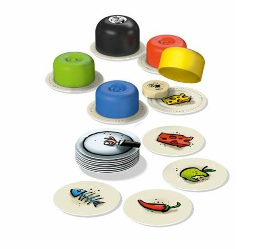 Nem számít, hogy avasodott sajtról vagy záptojásról van szó, ebben a frappáns reakciójátékban gyorsan nyúljatok a keresett finomságért! De vigyázz, a fránya légy és a változó színek általában üres tányérokat biztosítanak... Szerinted ki fogja megragadni a legtöbb finomságot? Gyorsasági játék, amelyben nem elég arra figyelni, melyik ennivalóra kell lecsapni, arra is emlékezni kell, nem épp a légy falatozik-e belőle a fedő alatt! Mert ha a légy korábban az alá a fedő alá költözött, akkor nem szabad megérinteni, hanem legyet kell mondani. A patkánykártya és a más színű ételek tovább nehezítik a játékot.
