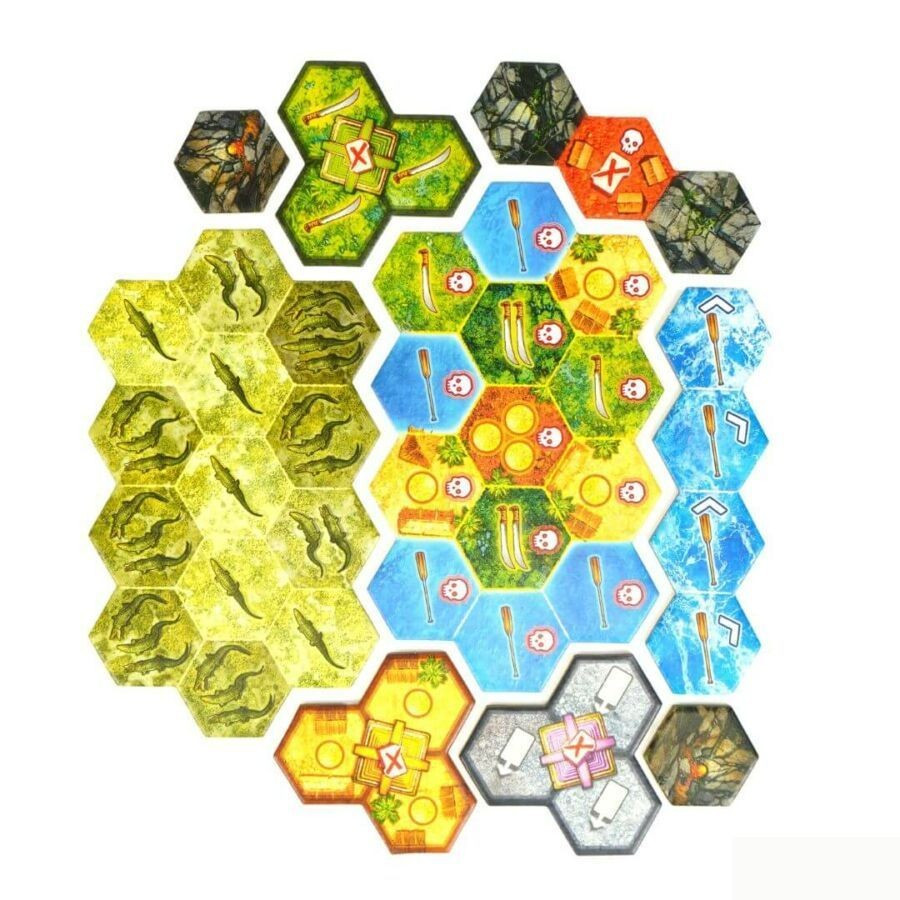 - A "Veszélyek" új kihívásokat hoz, mint például krokodilok, zuhatagok és templomok az arany városának kulcsaival. Kombináld új barlangi jelzőkkel a még nagyobb változatosság érdekében!