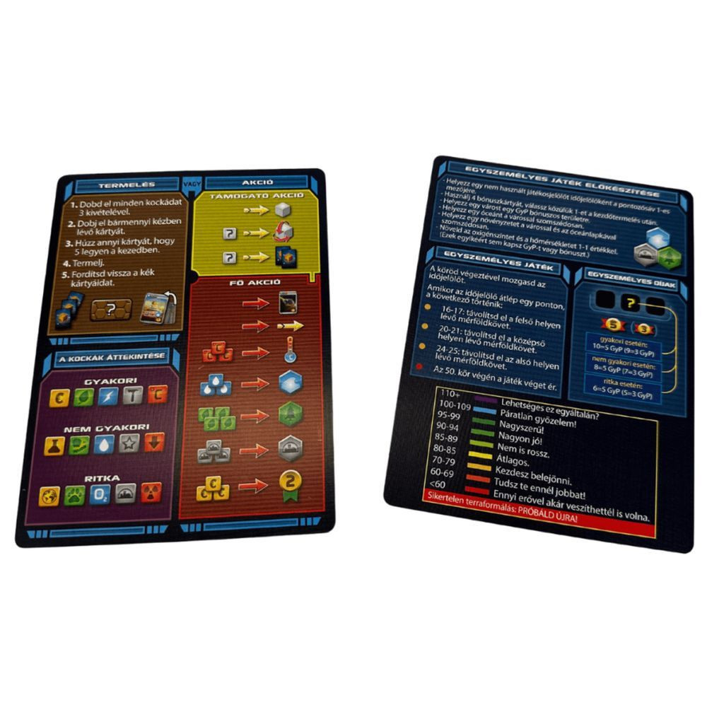 Felejthetetlen kalandon vehetsz részt a Terraforming Mars: A Kockajátékban, ahol Te határozod meg az emberiség jövőjét a Marson. Tanulj strategizálni, élvezd a kreatív kihívásokat és merülj el a Mars felfedezésében. Az izgalmas játékélmény, a gazdag tartalom és a versenyképes játékmechanizmus garantáltan lenyűgözi majd a társasjáték szerelmeseit. Ne hagyd ki ezt a különleges játékot, és hozd meg a legjobb döntéseket, hogy megnyerd a Mars megváltoztatásának nagyhatalmi lehetőségét!