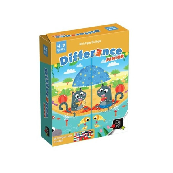 A Difference junior vidám és színes képekkel állítja kihívás elé már az óvodások megfigyelőkészségét is. Két nehézségi szinten kell a gyerekeknek megtalálni a saját és az asztal közepén lévő kártyák közötti különbséget. Akinek ez először sikerül, az a saját kártyáját az asztal közepére teszi az előző kártyára, és a játék folytatódik. Az nyer, akinek először sikerül megszabadulnia az összes kártyájától.