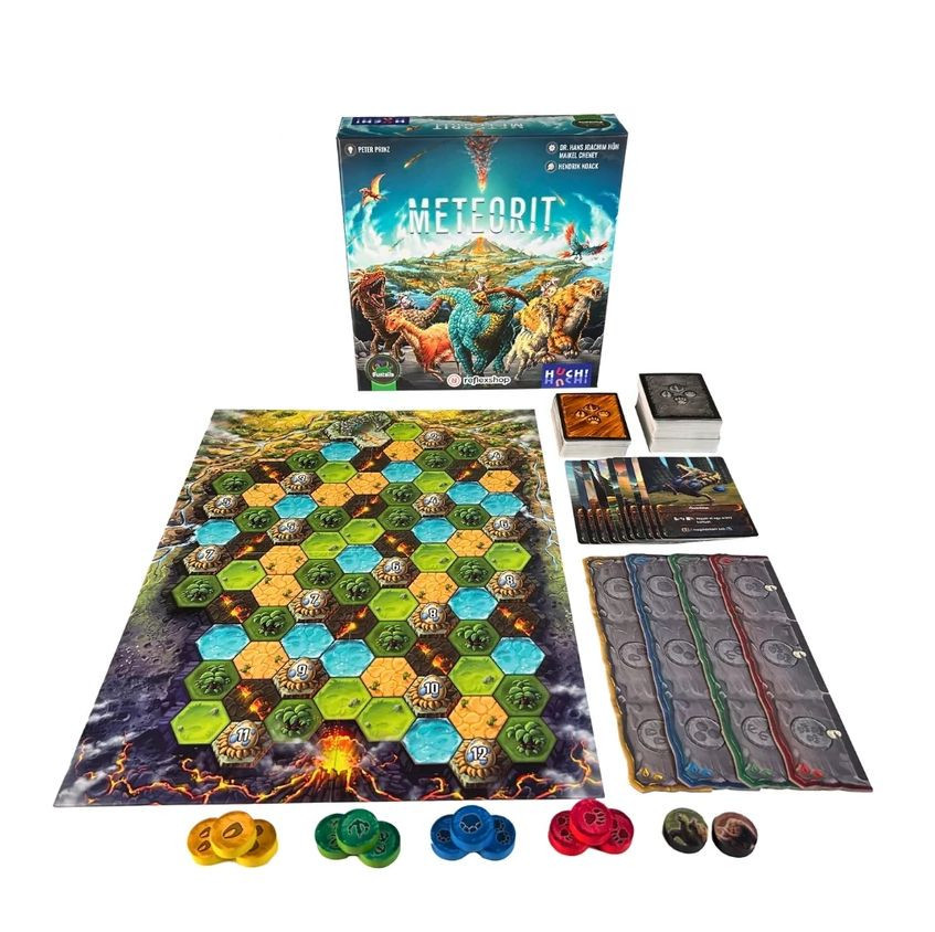 Meteorit társasjáték gyors játékmenetével és mély stratégiai lehetőségeivel tűnik ki. Az ősi múltban járunk, ahol a célod az, hogy kihalás szélén álló és veszélyeztetett fajokat ments meg, megváltoztatva ezzel a történelem menetét!