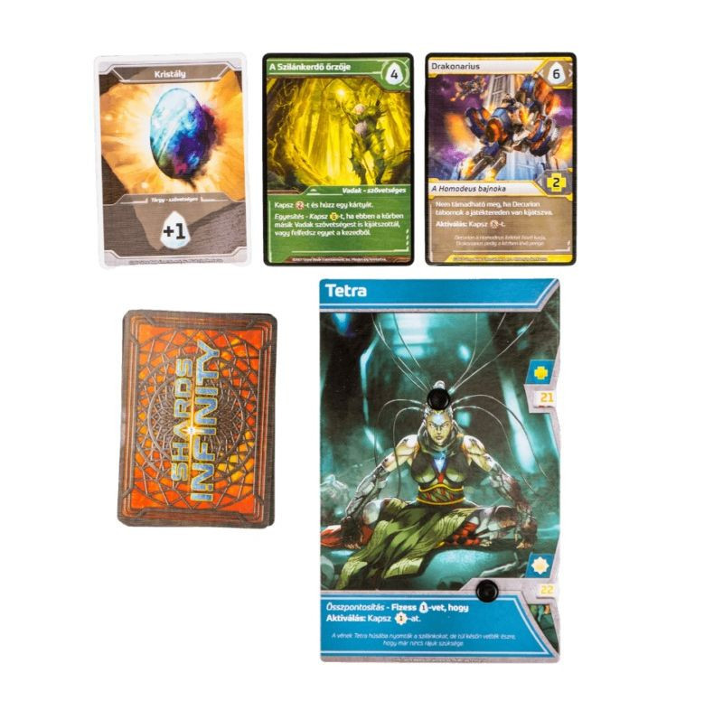 Kedves Játékos! Szeretettel mutatjuk be a Shards of Infinity társasjátékot, egy kivételes stratégiai élményt, amit most te is otthonodban élvezhetsz. Túllépve a hagyományos pontgyűjtésen, e játékban a célod az ellenfelek legyőzése és életerejük nullára csökkentése lesz.