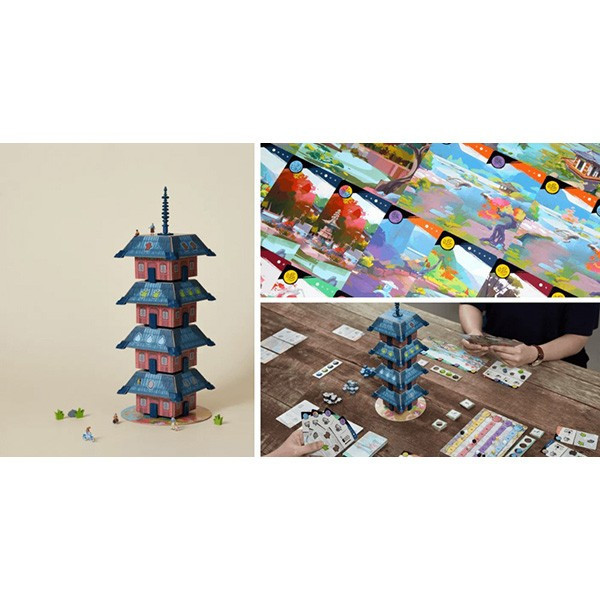 A Pagodák kertje (Four gardens) egy gyönyörű grafikájú, könnyed szabályokkal dolgozó családi társasjáték. A távolkeleti témán túl a legnagyobb vonzereje a dobozban található 3D-s pagodában rejlik, aminek minden szintje forgatható. A pagoda nem csak díszként szolgál, szerves része a játék menetének - többek között ettől is ilyan izgalmas koncepció a Pagodák kertje.