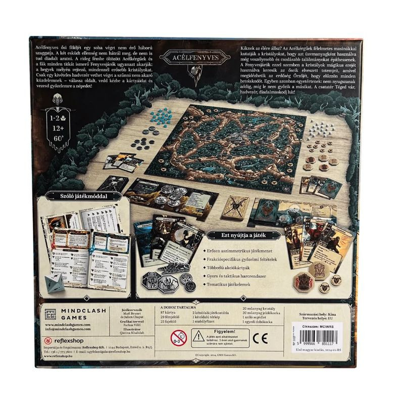 Képzeld el, hogy két eltérő világ ütközik össze az Acélfenyves társasjátékban! A vashegyek bátor telepesei, az Vaskérgűek, szemben állnak az erdők árnyai, a fürge Fenyvesjárók ellen. A tét a Larimor Kristályok birtoklása, melyek hatalmas energiával bírnak, és a végső hatalmat ígérik annak, aki uralja őket.