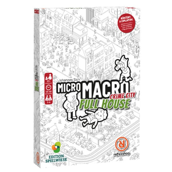 Itt az idő visszatérni a MicroMacro világba, mert Crime Citynek újra szüksége van a nyomozói képességetekre. A Full House egy önálló társas, a játékmenet és az élmény változatlan, viszont újabb megoldásokra váró bűntényekkel várja a rejtélyre éhes nyomozókat. A város új részeit vizsgálhatjátok meg, visszatérő karakterekkel együtt. Oldjátok meg a legújabb bűntényeket!